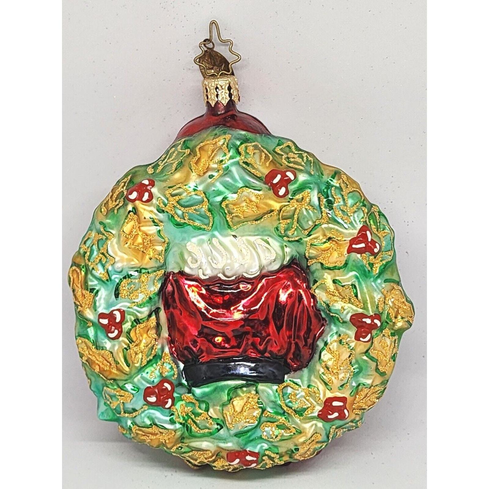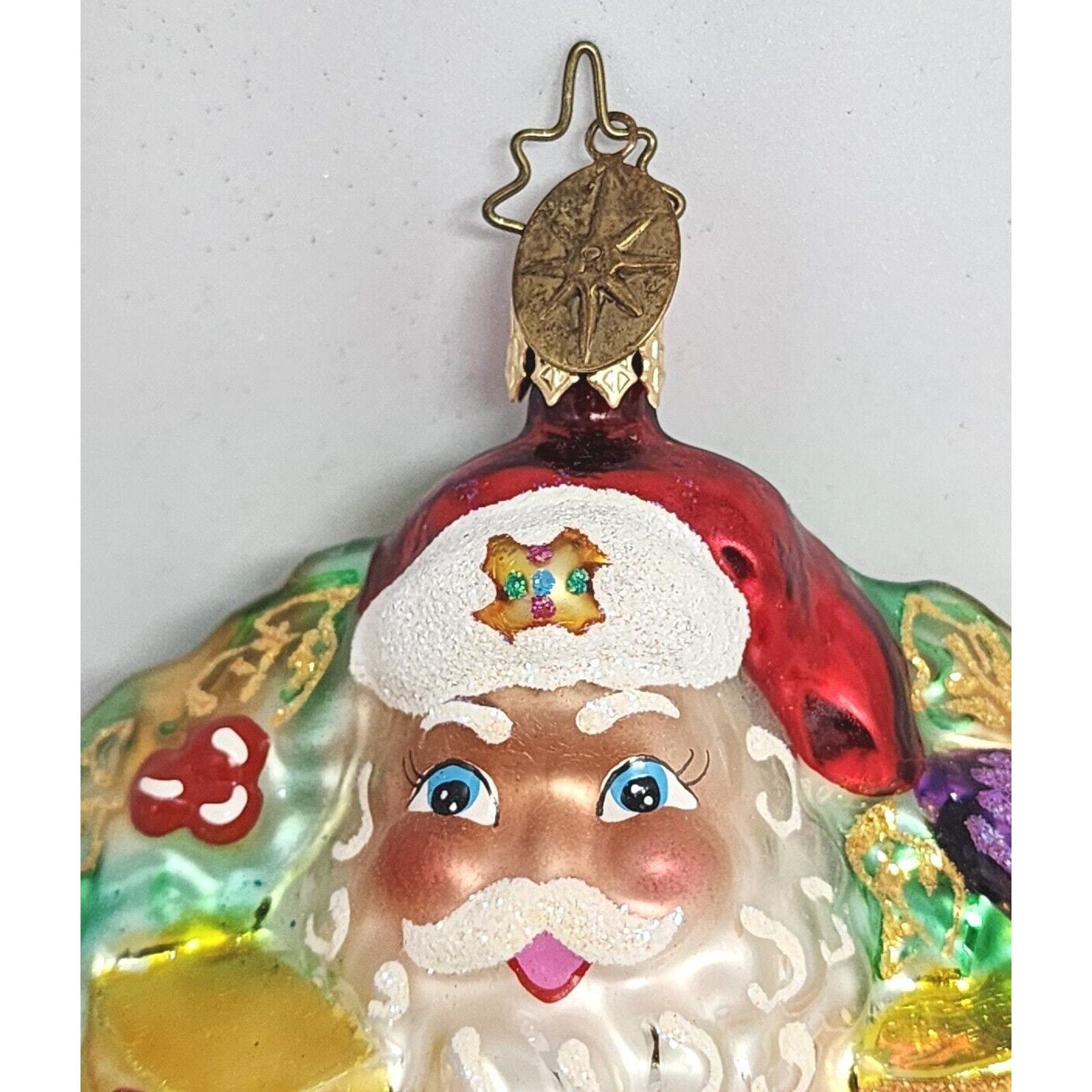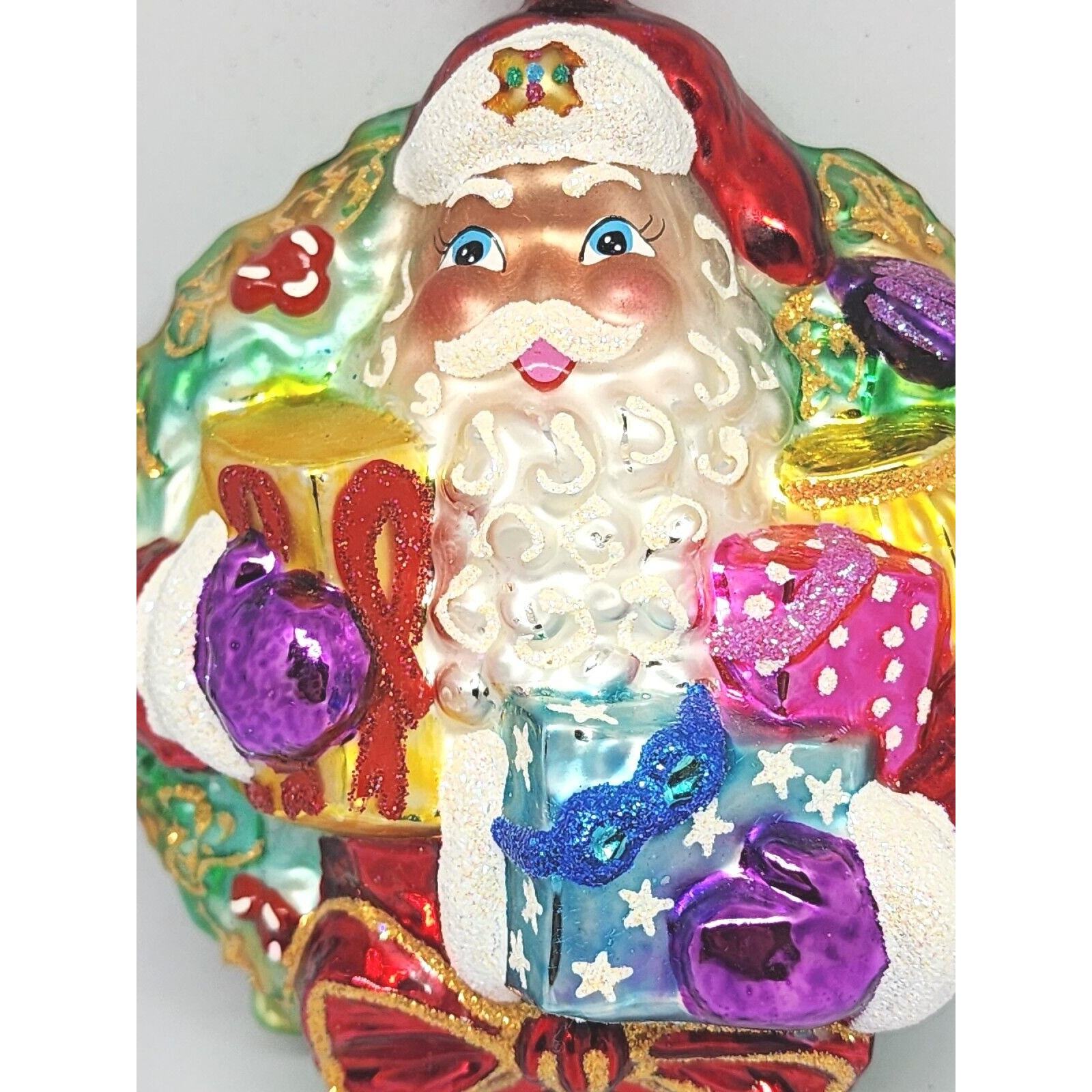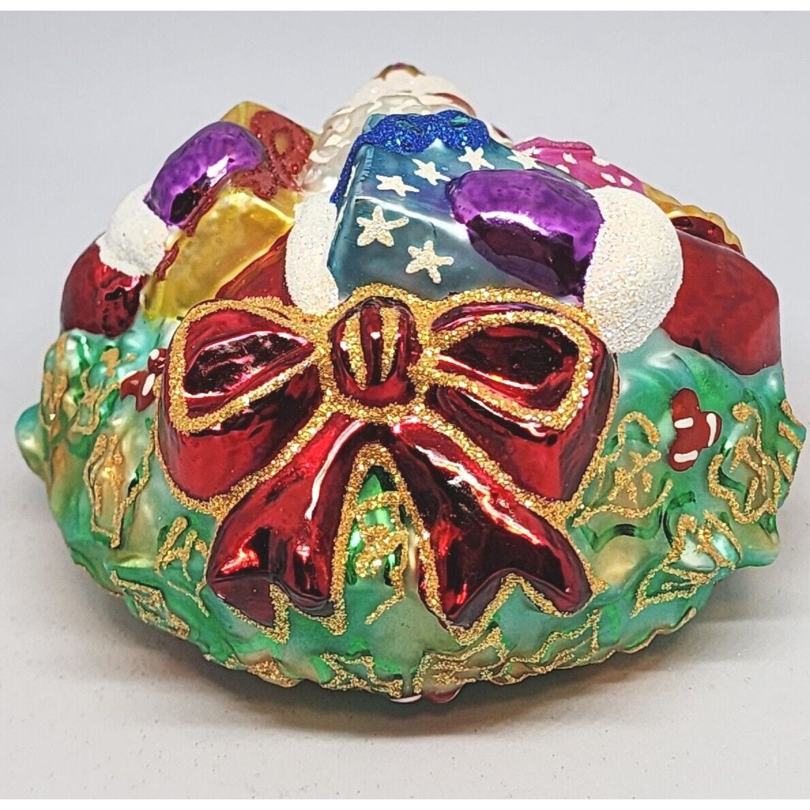 - Christopher Radko A Gift For Giving Santa Wreath Glass Christmas Ornament 5”