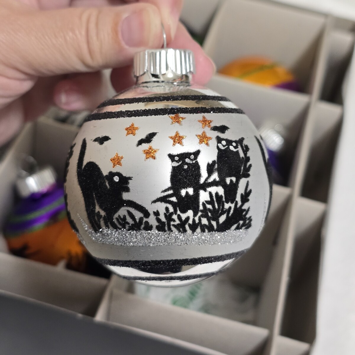 Complete in Box Christopher Radko Shiny Brite Box Set of 9 2014 Halloween Ornaments Bulbs / Indents. Come as pictured. Beautiful set.