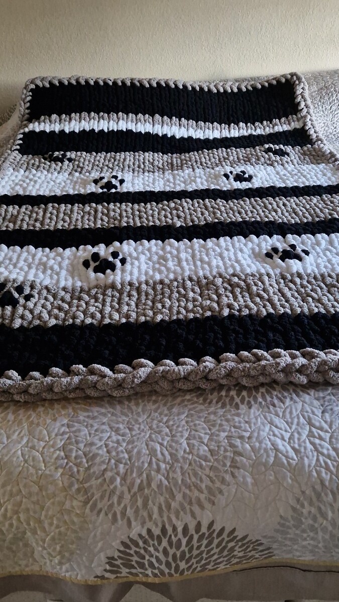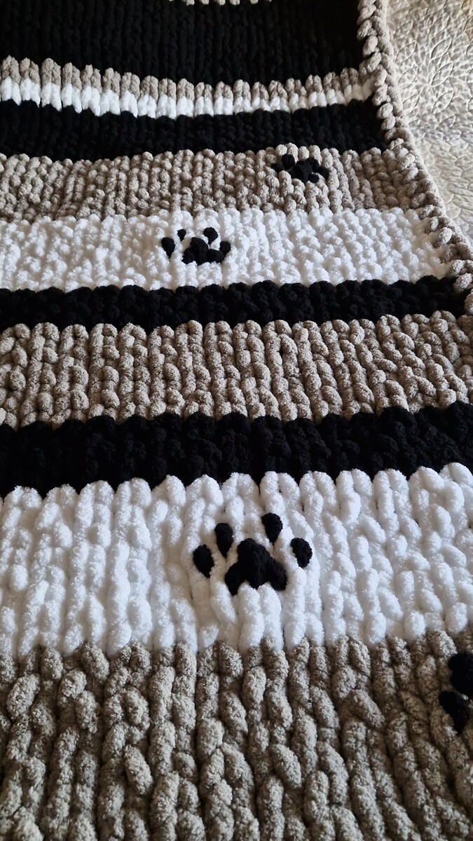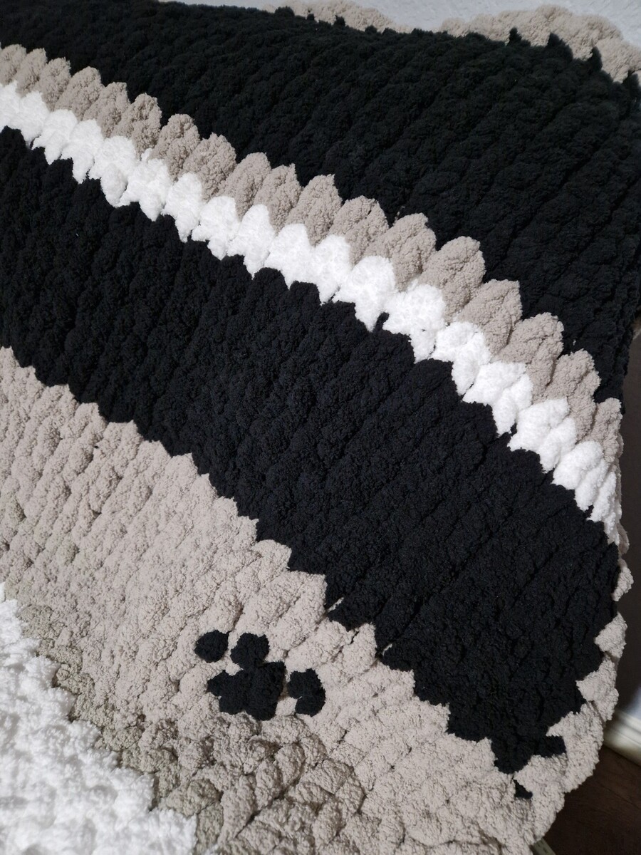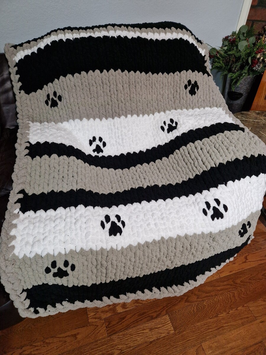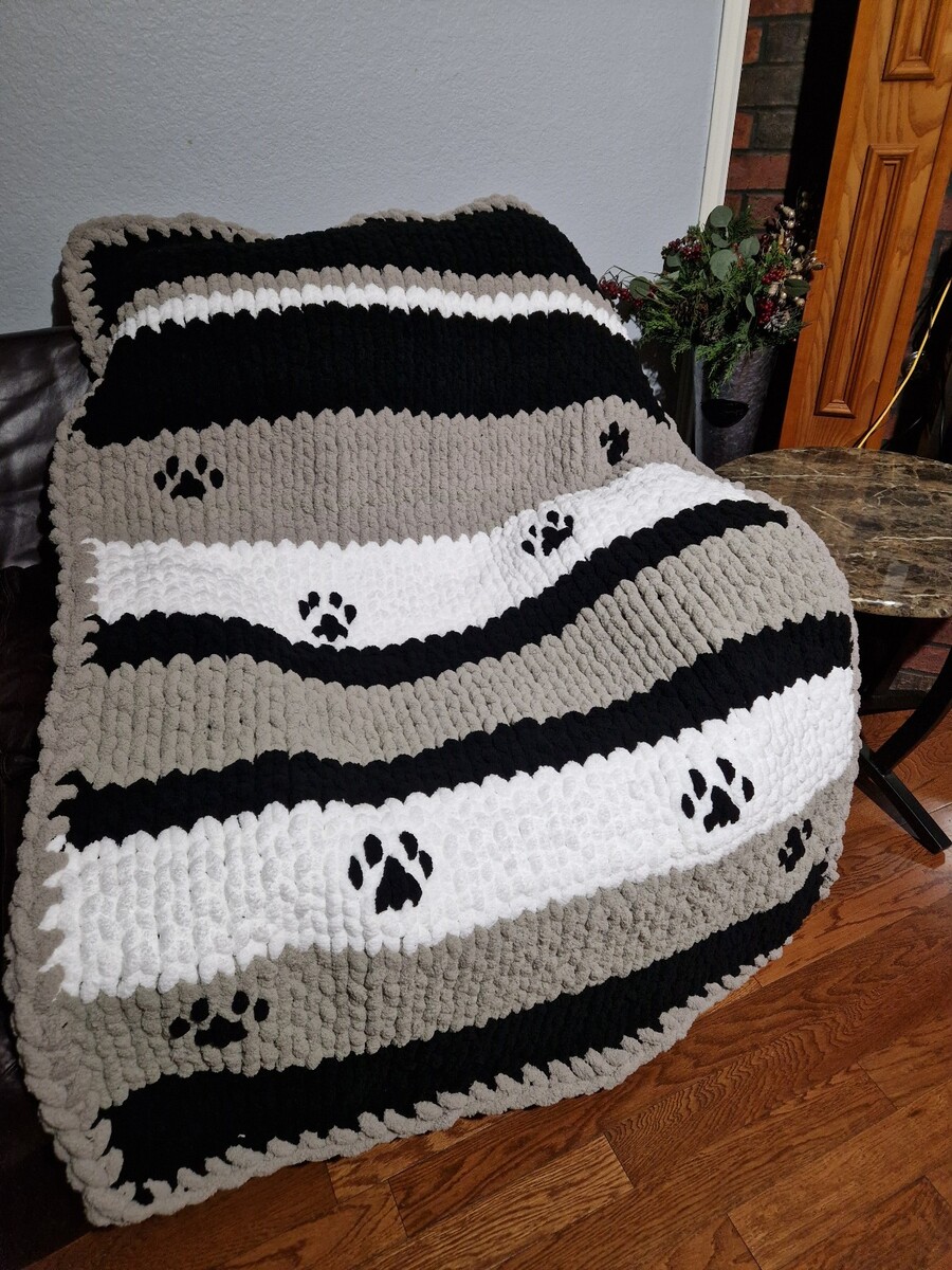 - Chunky Chenille Hand Knit Super Soft Blanket |GIFT IDEA| Paw Print Blanket