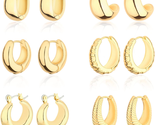 - Chunky Hoop Earrings Set 14K Gold Hoop Earrings for Women Hypoallergenic