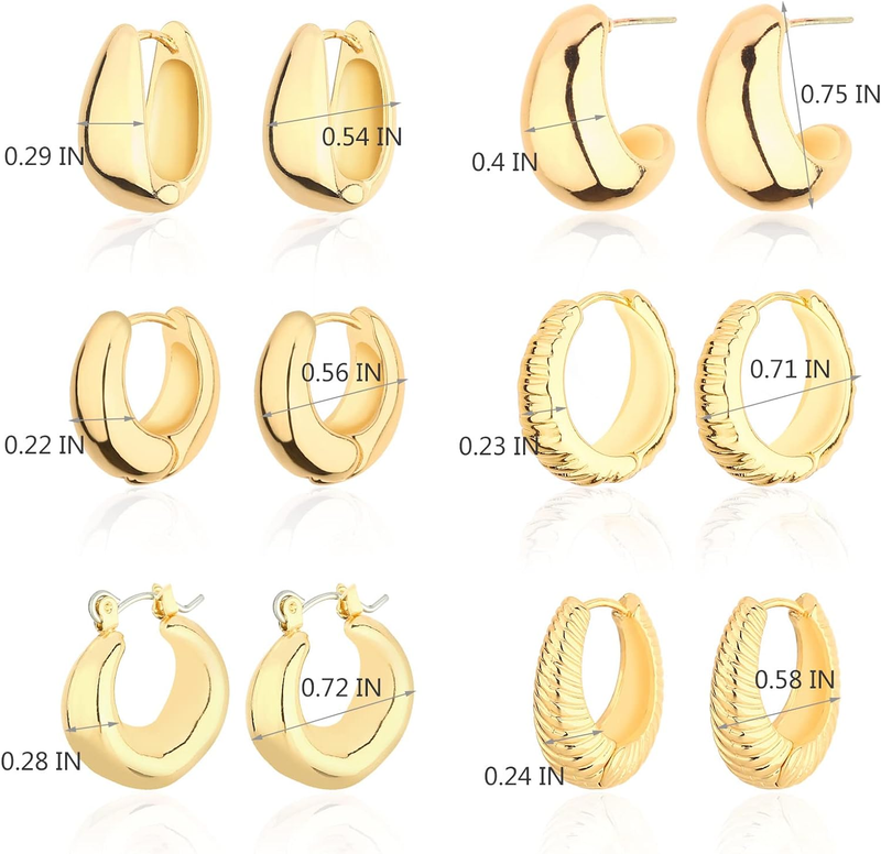 - Chunky Hoop Earrings Set 14K Gold Plated Hoop Earrings for Women Hypoallergenic,
