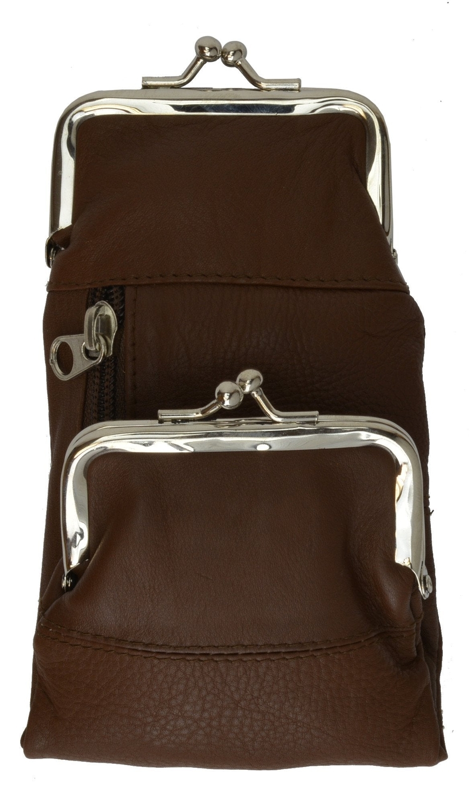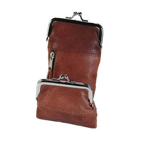 - Cigarette Case w/ Change Purse Brown Genuine Leather Currency Pocket Button Snap