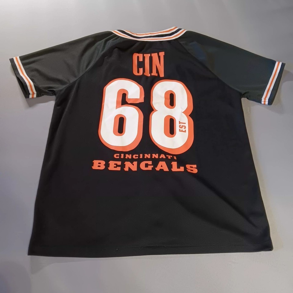 - Cincinnati Bengals Baseball Jersey Mens Medium Button Up Shirt #68 Football NFL