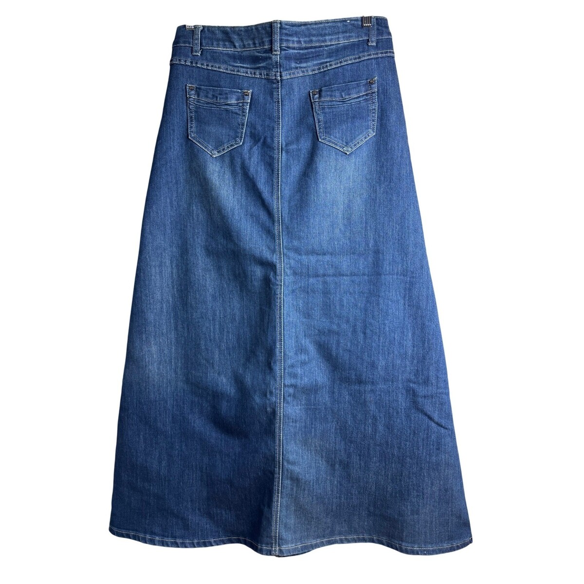 Keywords: Cindy H Denim Skirt, Women's Maxi Skirt, Blue Denim Skirt, A Line Denim Skirt, Button Front Skirt, Zip Front Skirt, Size T42 Skirt, Long Denim Skirt, Casual Denim Skirt, Boho Denim Skirt, Summer Denim Skirt, Spring Denim Skirt