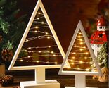 Cinnvoice Wood Christmas Tree with Lights Set of 2 White 13.4" 9.8"