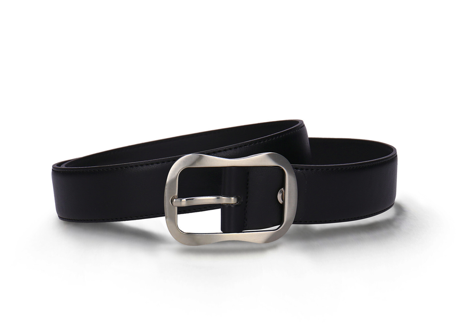 - Cintura vegana nera da donna in Apple Leather elegante fibbia curva regolabile