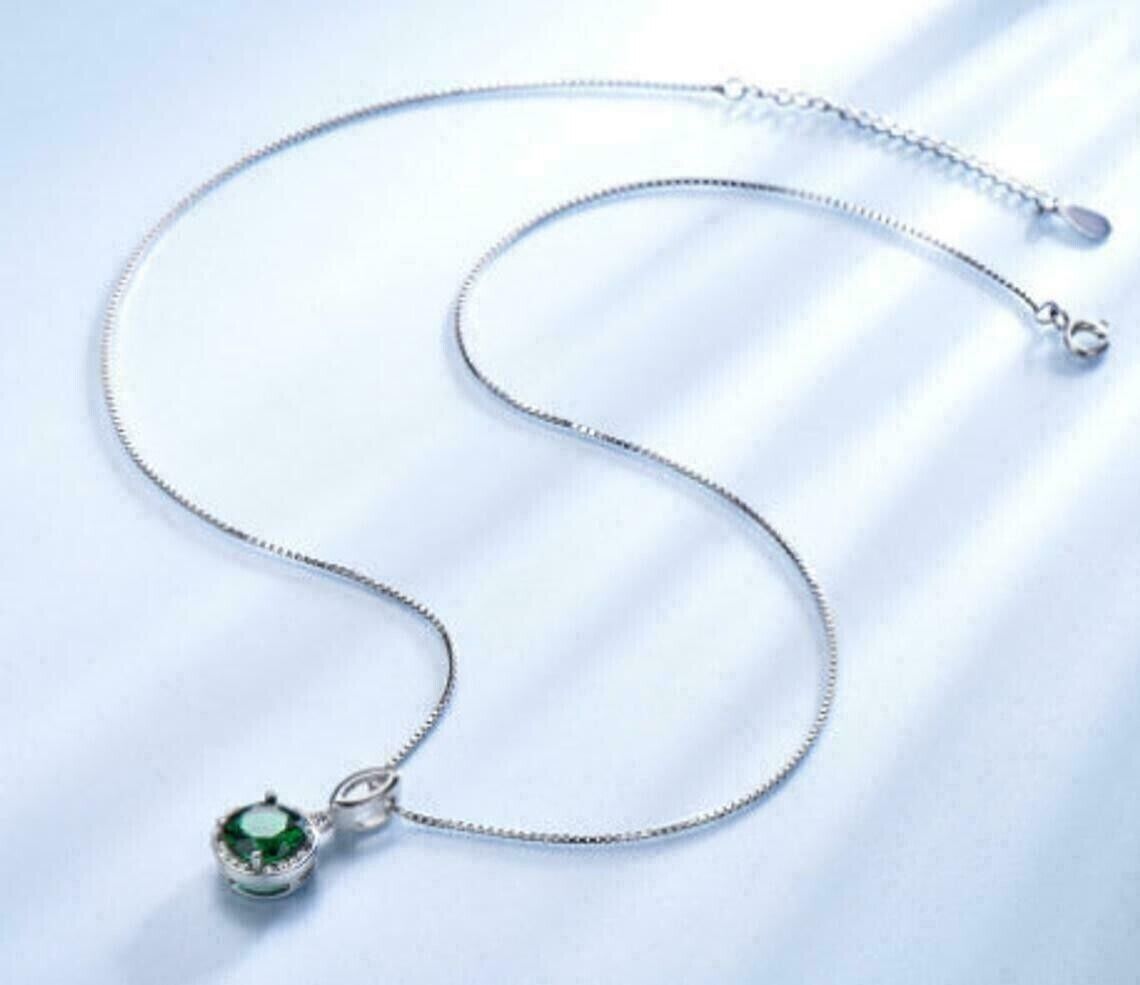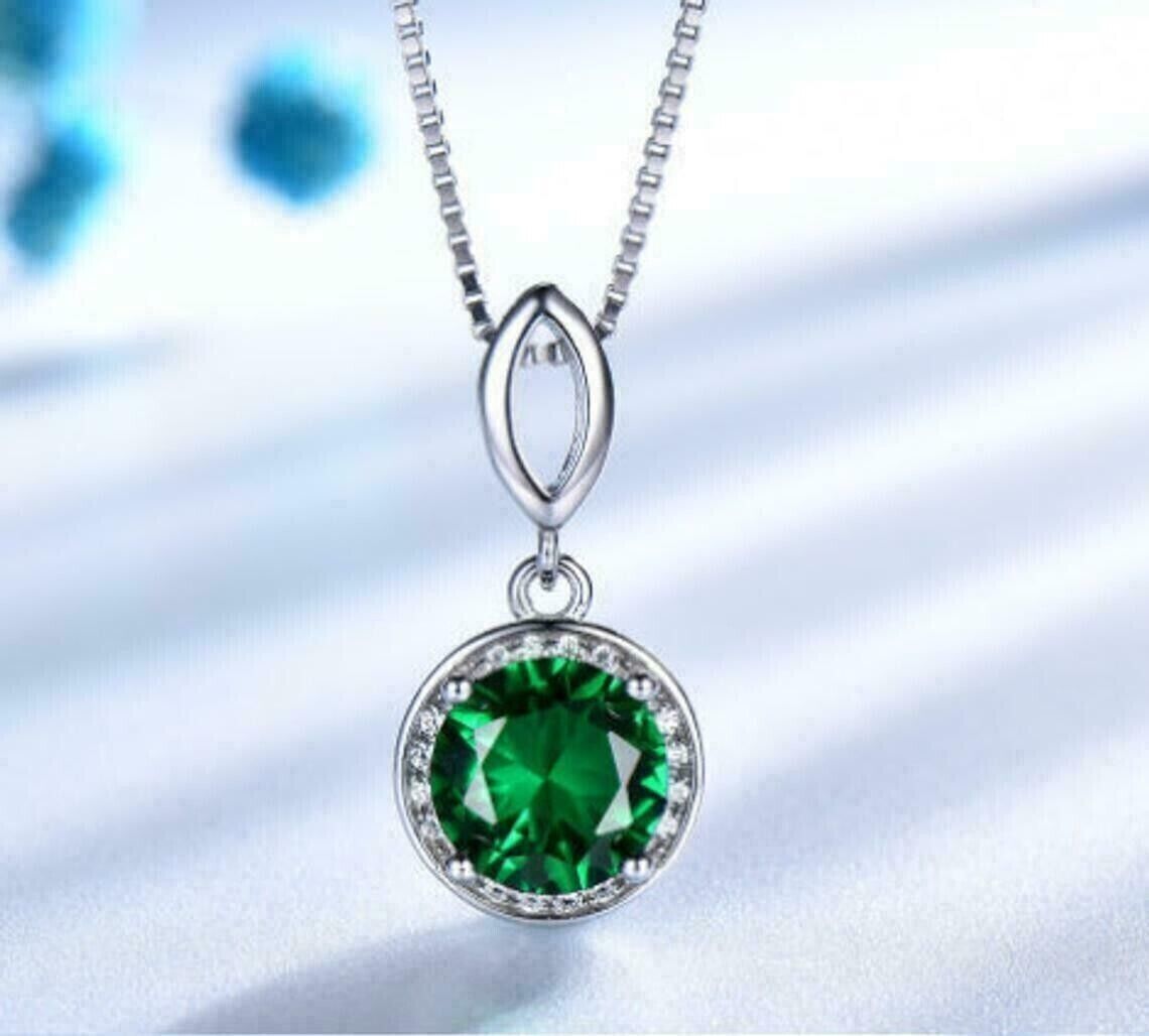 - Ciondolo a forma di alone con diamante verde smeraldo CZ a taglio rotondo...