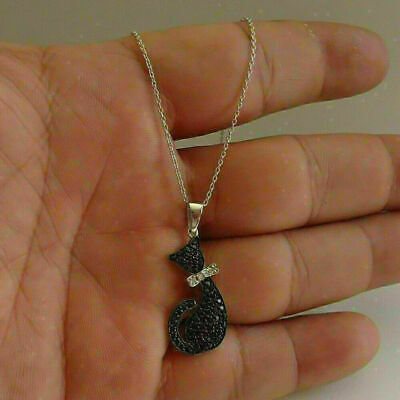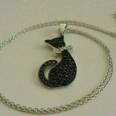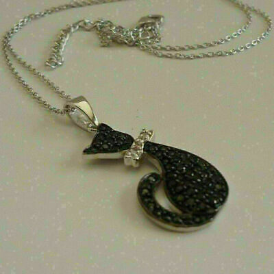 Ciondolo gatto con diamante nero taglio rotondo da 1,80 ct finitura oro...