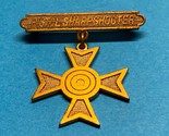 Slightly smaller than the rifle version of the sharpshooters badge, this pistol variety was first made in 1907 in gold color for the National Guard Members.