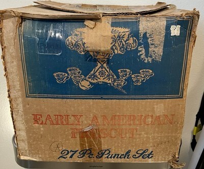 - Circuit 1960s anchor Hocking glass early American Prescut 27 piece punch set