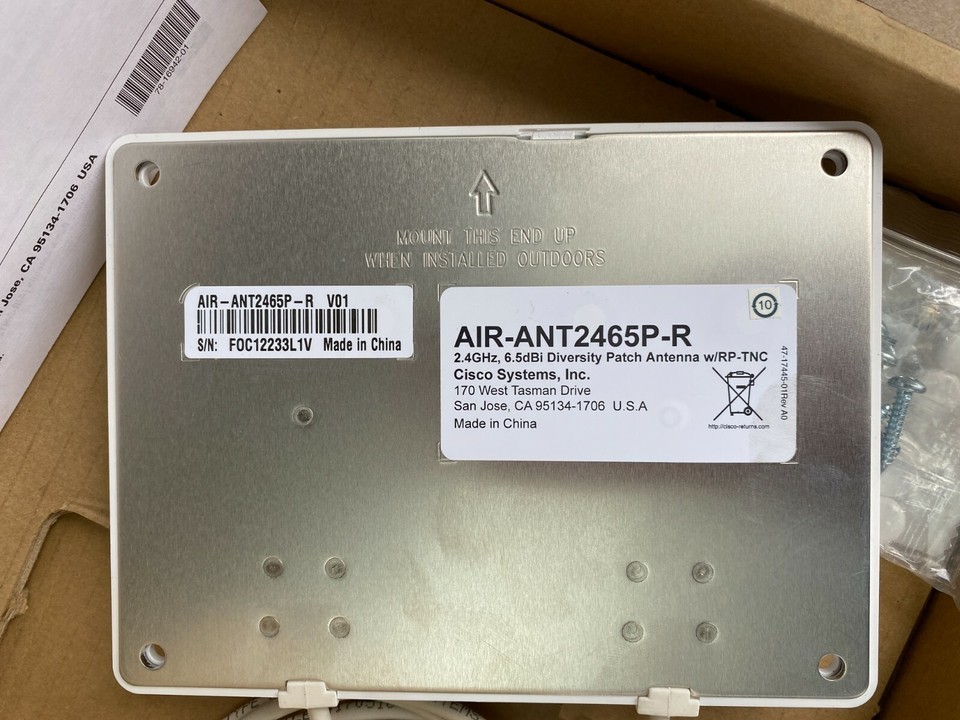 - Cisco AIR-ANT2465P-R Diversity Patch Antenna 2.4GHz 6.5dBi w/ RP-TNC Plug - NEW