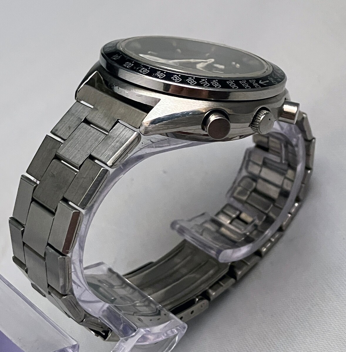 Watch is overall in good condition. Small scratches on crystal, case, caseback and bracelet.