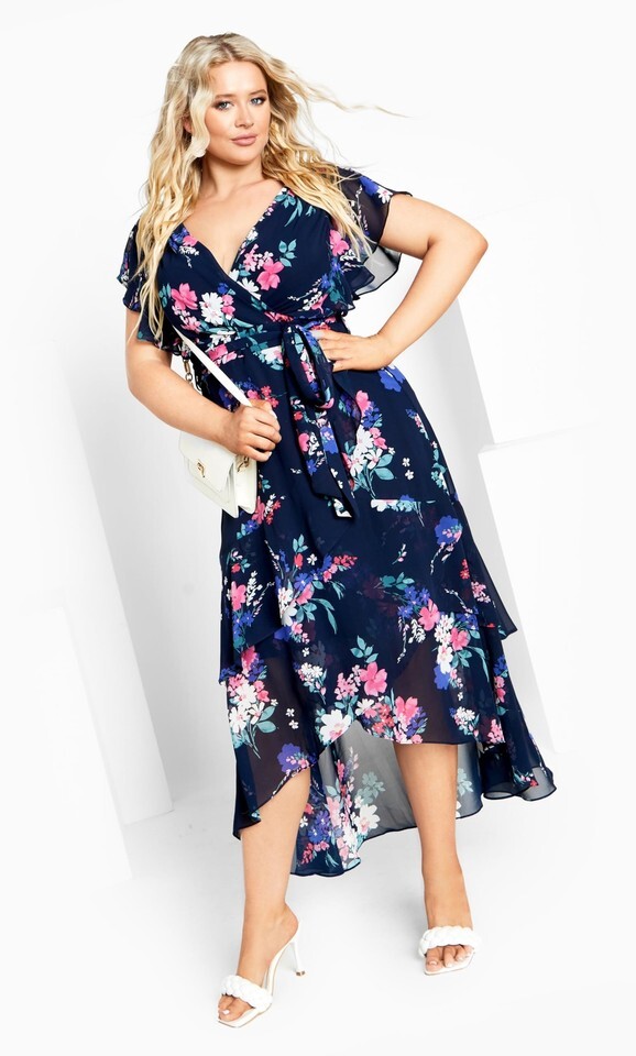 - City Chic Plus Size Margot Print Maxi Dress Navy Lotte Bouquet Size 24 New