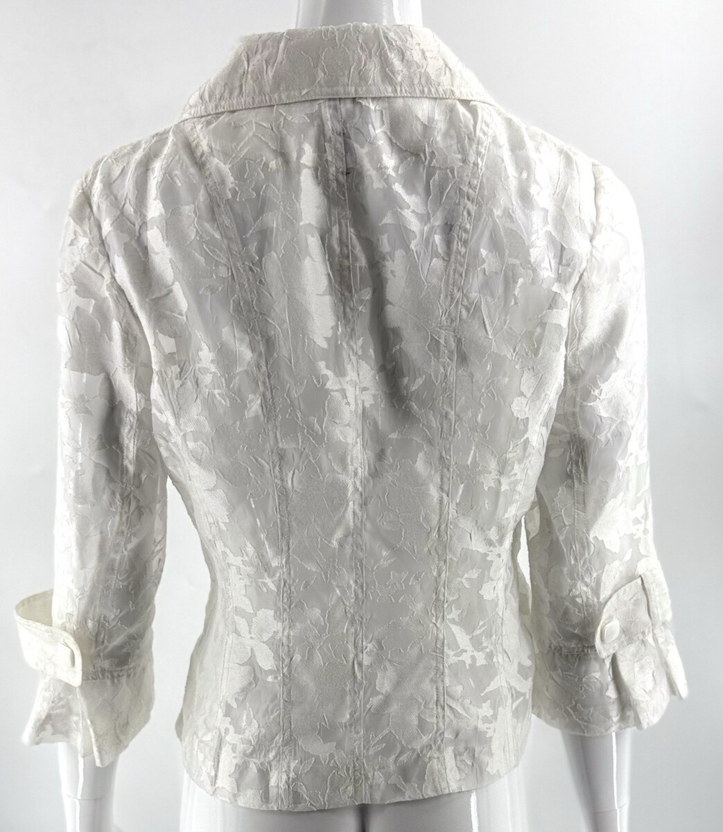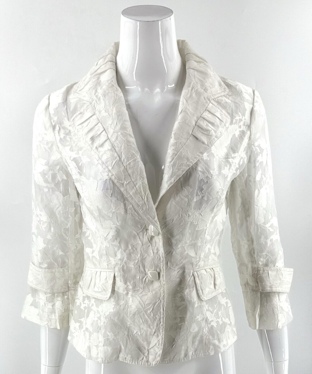 - Clara S Blazer Jacket Size XS White Lace Semi Sheer Button Front 3/4 Sleeve