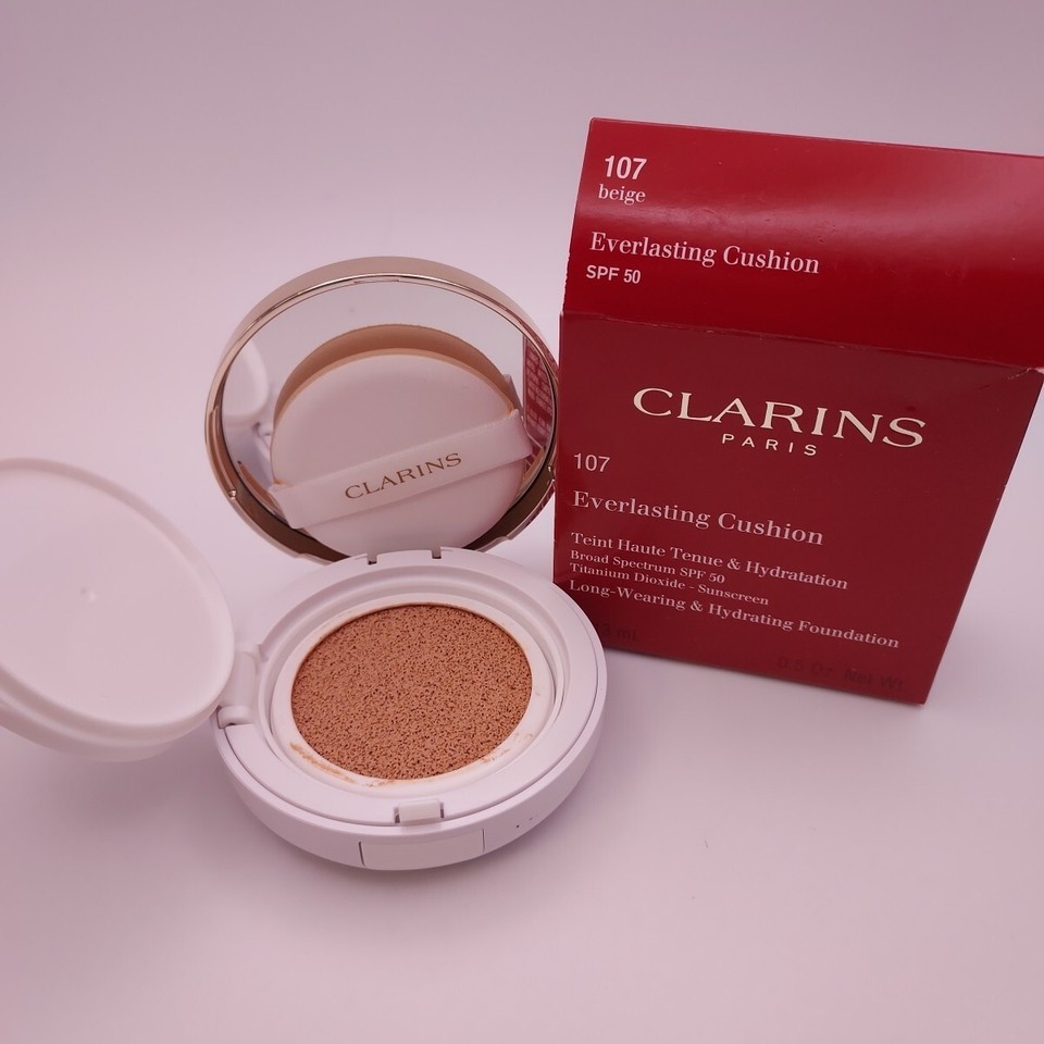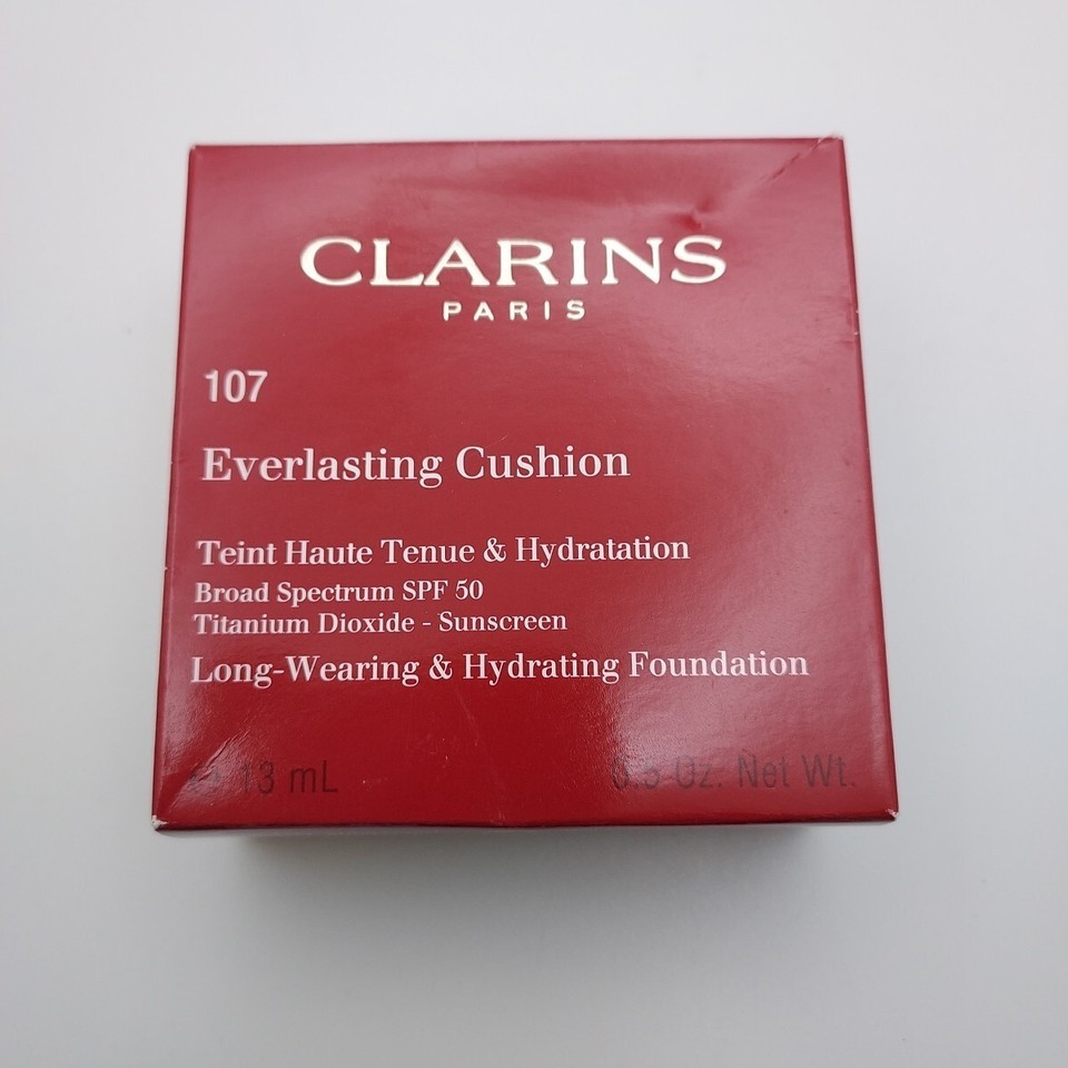 - Clarins Everlasting Cushion SPF50 Long Wearing Hydrating Foundation 107 BEIGE