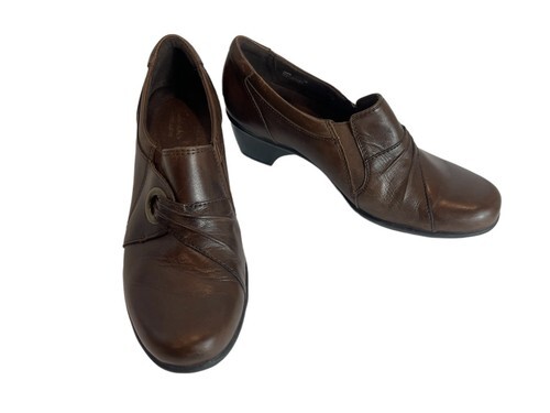 - Clarks Bendables Heels Women 7M Shoes Brown Leather Ankle Slip On Casual Clogs