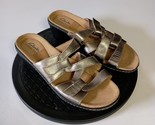 - Clarks Collection Women's Sz 9 Slip-On Sandals Leather Gold Metallic