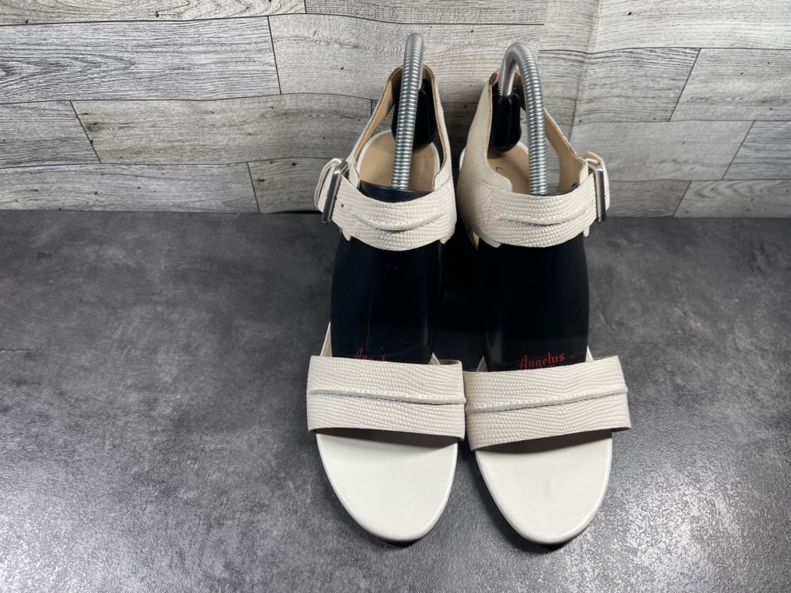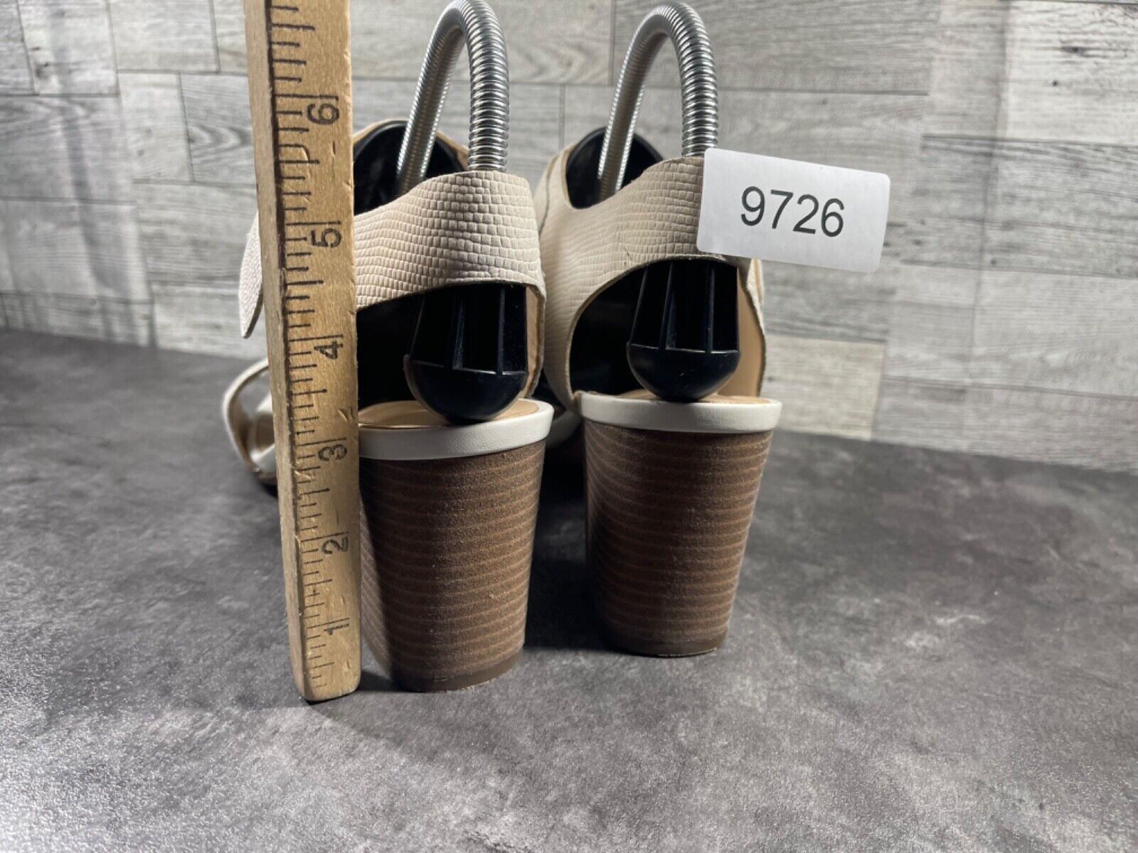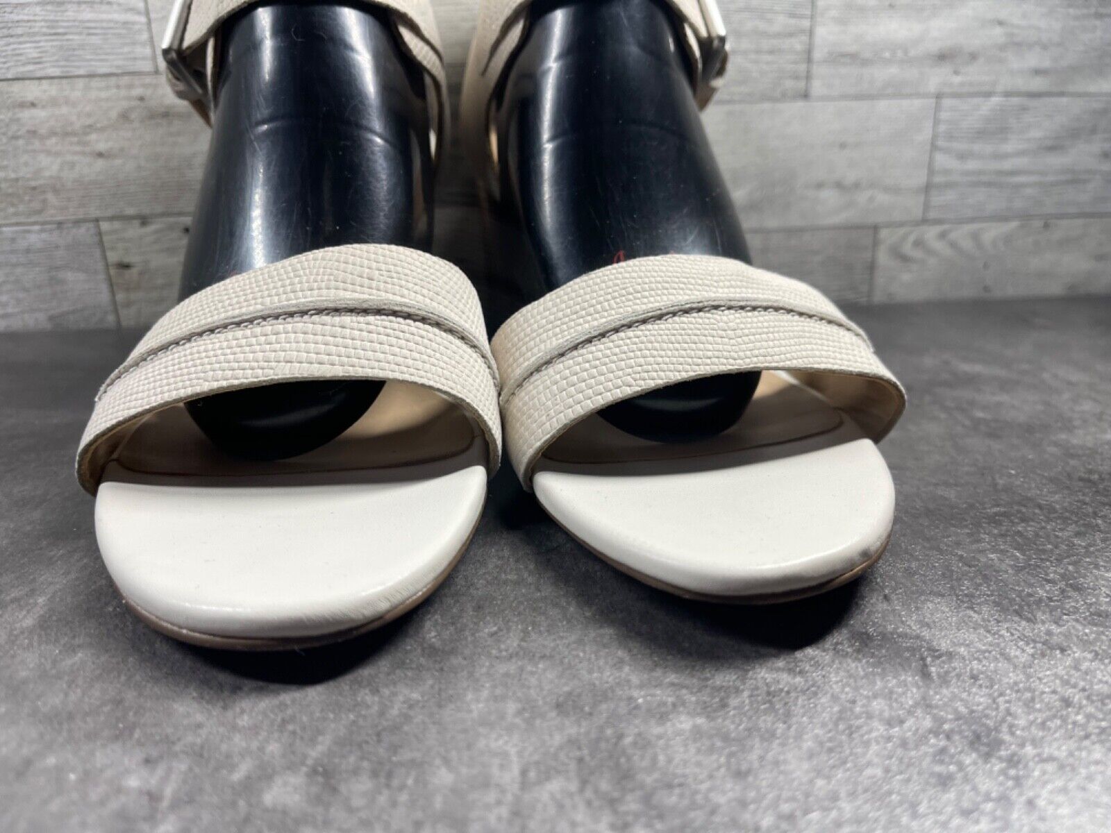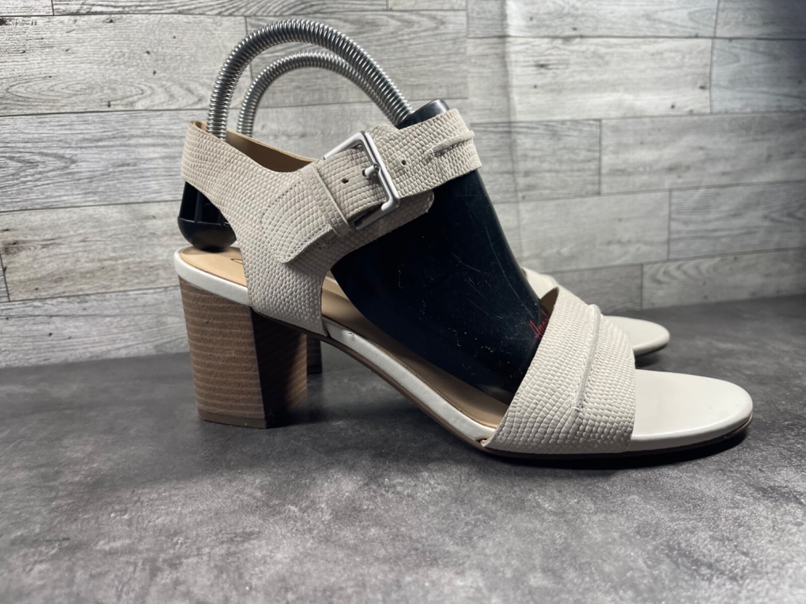 - Clarks Sandals Women 10M Karsea hi Seam Shoes White Leather Block Heel Slingback