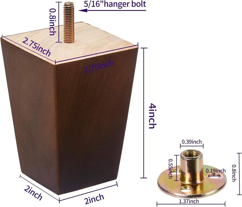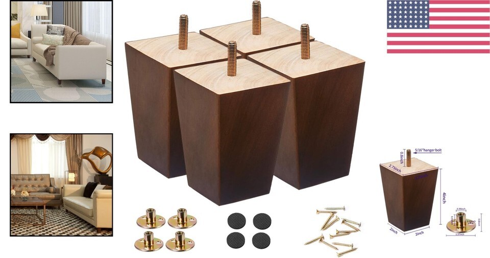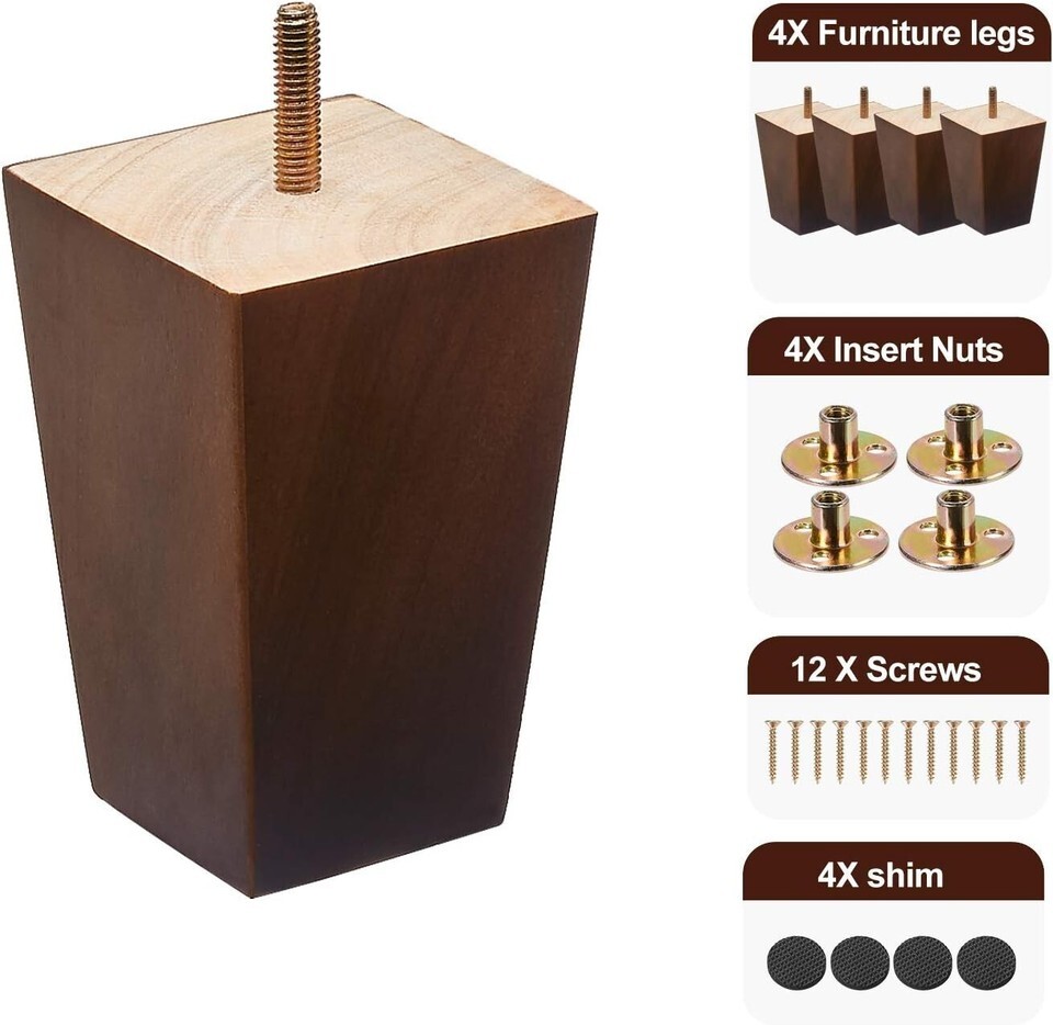 - Classic 4-Inch Wooden Square Legs for Sofa, TV Stand, and Dresser – Easy Setup