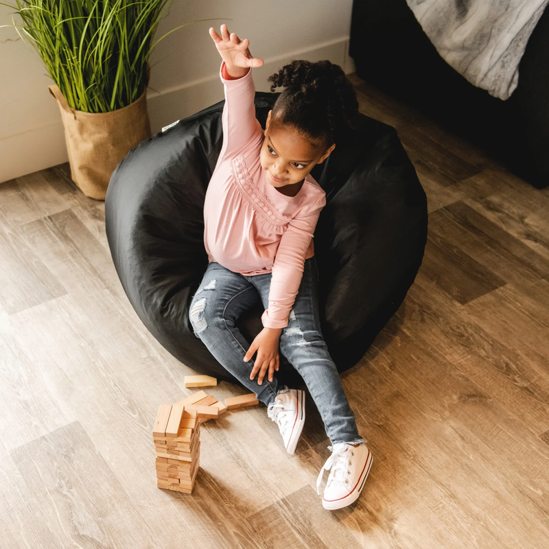 Big kids and little ones alike can enjoy a comfy spot to sit all their own! This bean bag chair is a great fit for a variety of living spaces with the "classic" bean bag shape everyone loves! Designed with a convenient handle makes it easy for little hands to travel to their next adventure.