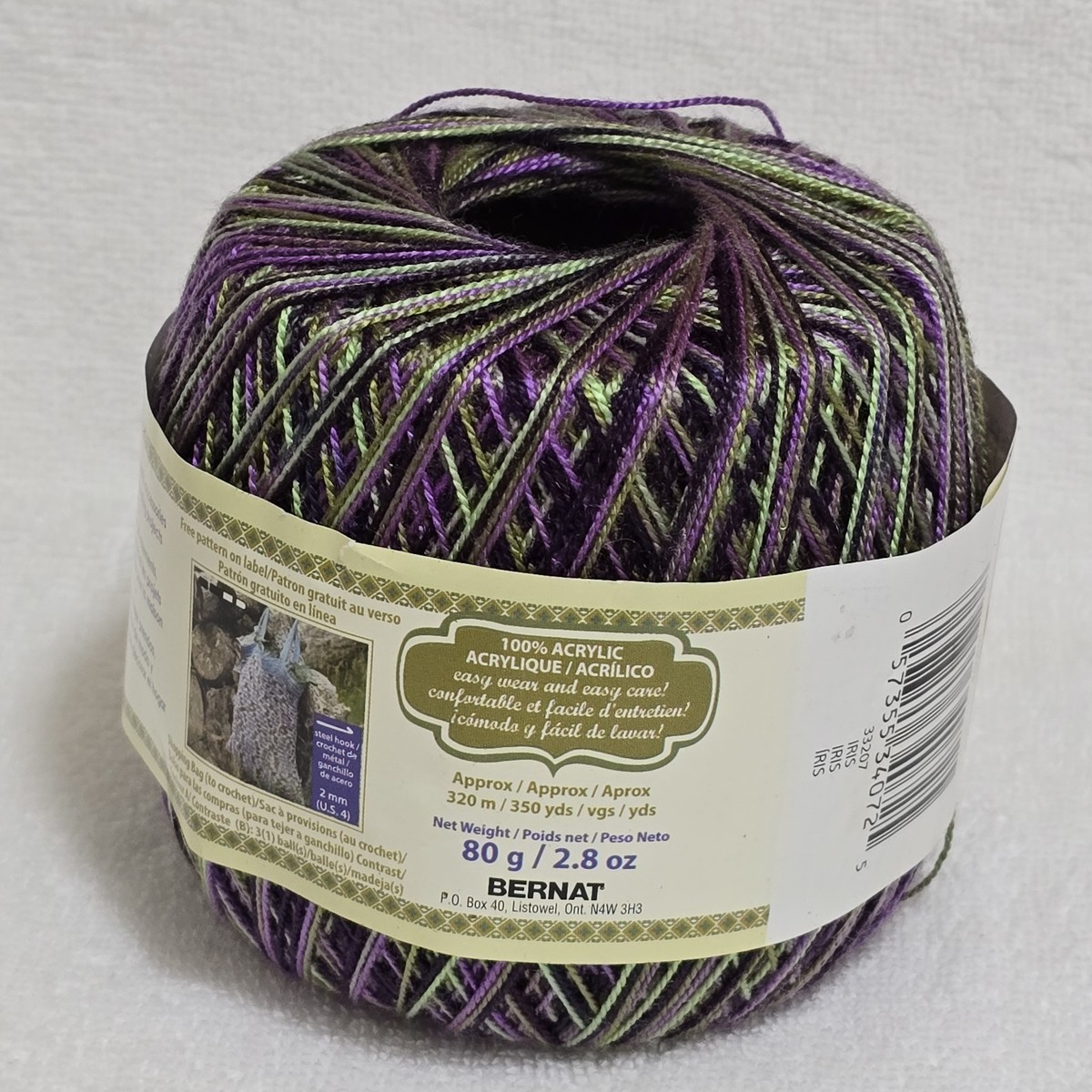 (1) @ Size 5 Bernat Acrylic Thread #33207 Iris - 350 yards.