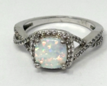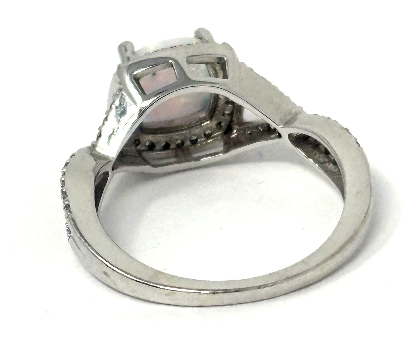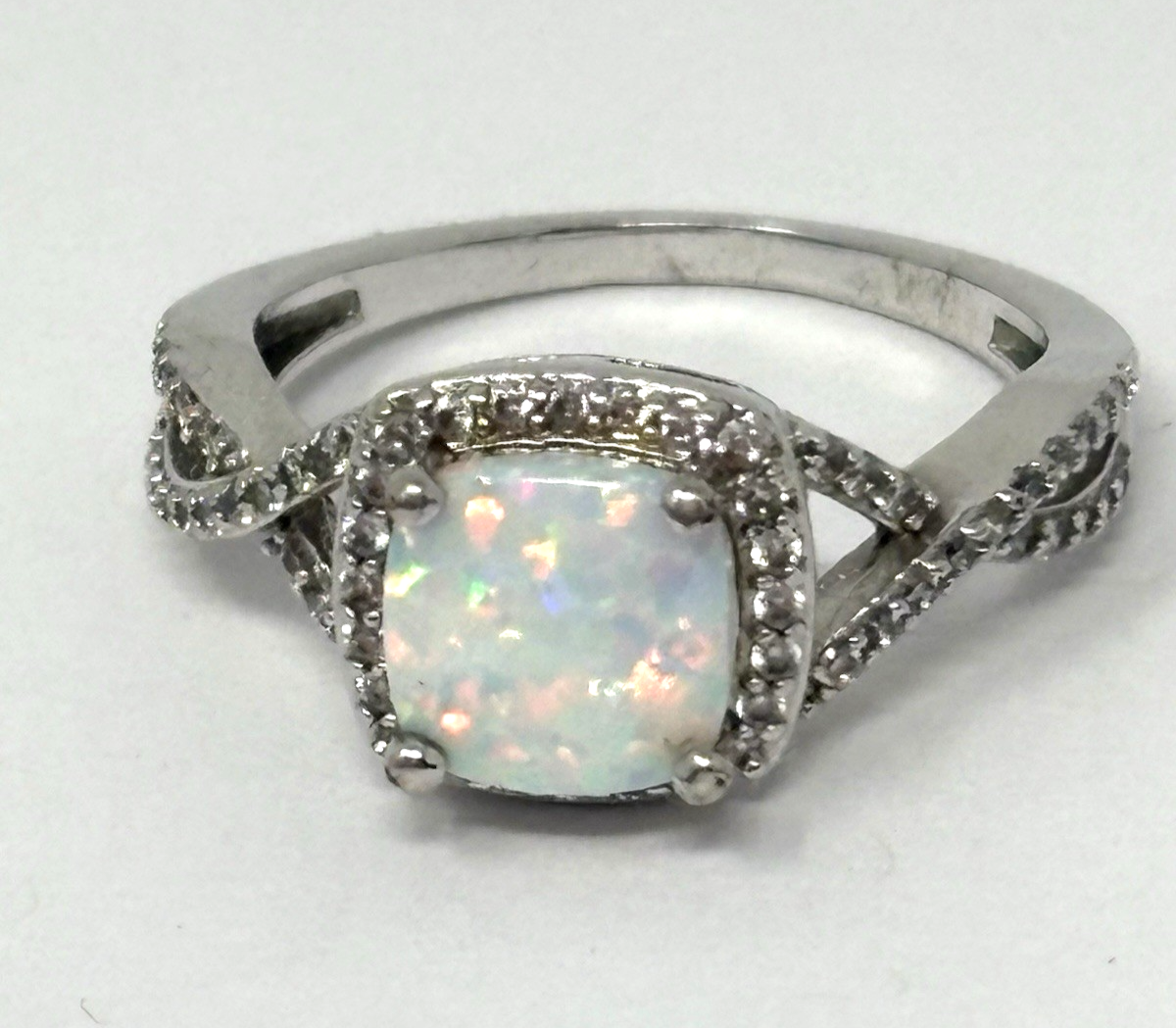 - Clear CZ White Lab Opal Infinity Halo Ring Silver Band Size 6