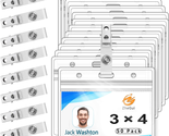 Clear Plastic Name Tag Holder and Metal Badge Clips with Vinyl Straps Waterproof PVC ID Card Holders Heavy Duty(50 Pack, Horizontal Large 3X4)