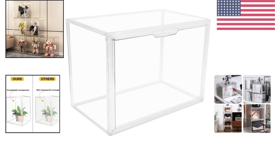 - Clear Stackable Acrylic Storage Bins with Magnetic Lid - Dustproof & Elegant
