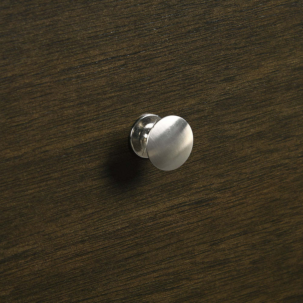 Brushed nickel hardware delivers a sleek contrast, enhancing the nightstand?s overall aesthetic and functionality