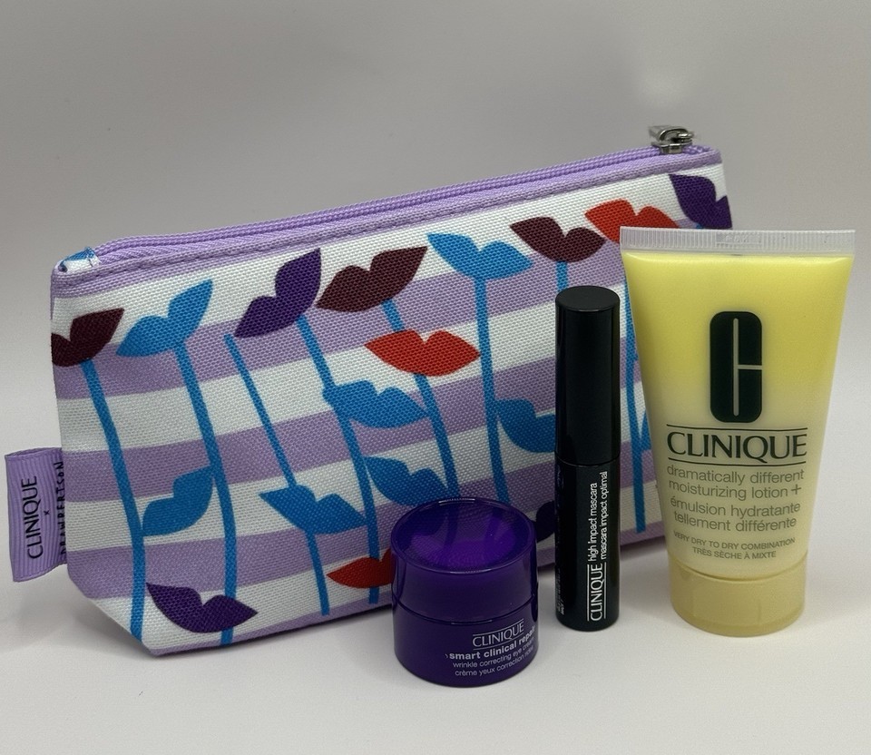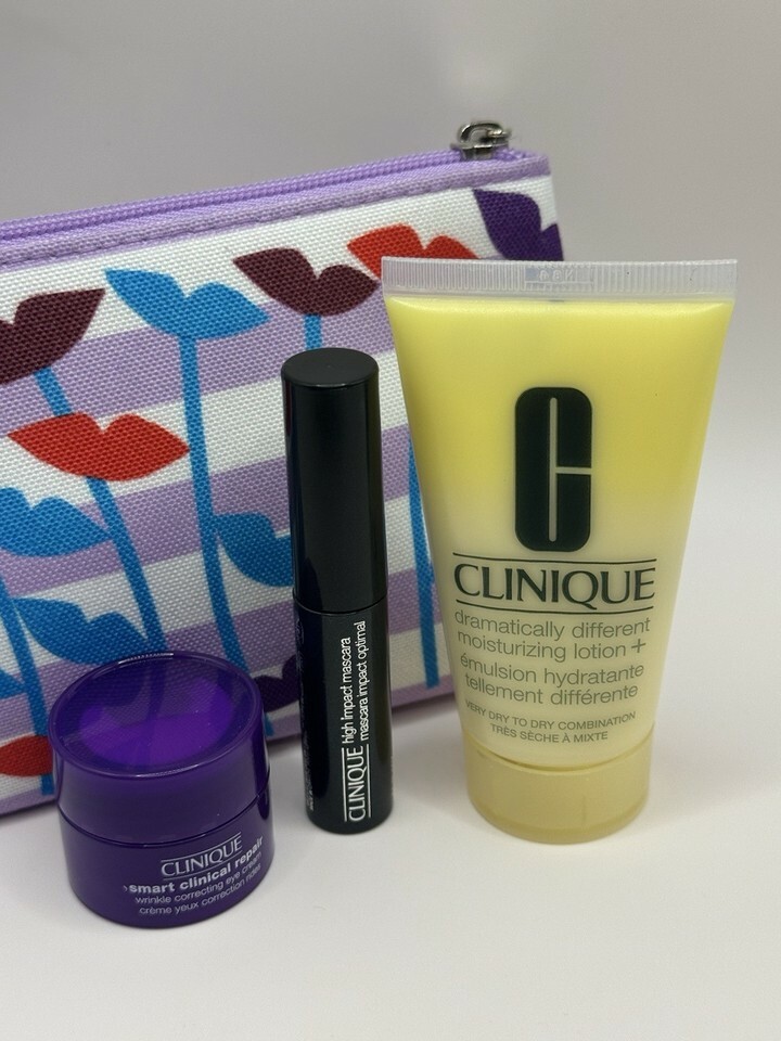 - Clinique 3-Piece Skincare & Makeup Set with Cosmetic Bag -Travel/Trial Size