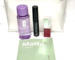 - Clinique 4-Pc Set: Lipstick 06 Rose Pop, Makeup Remover, Mascara & Bag