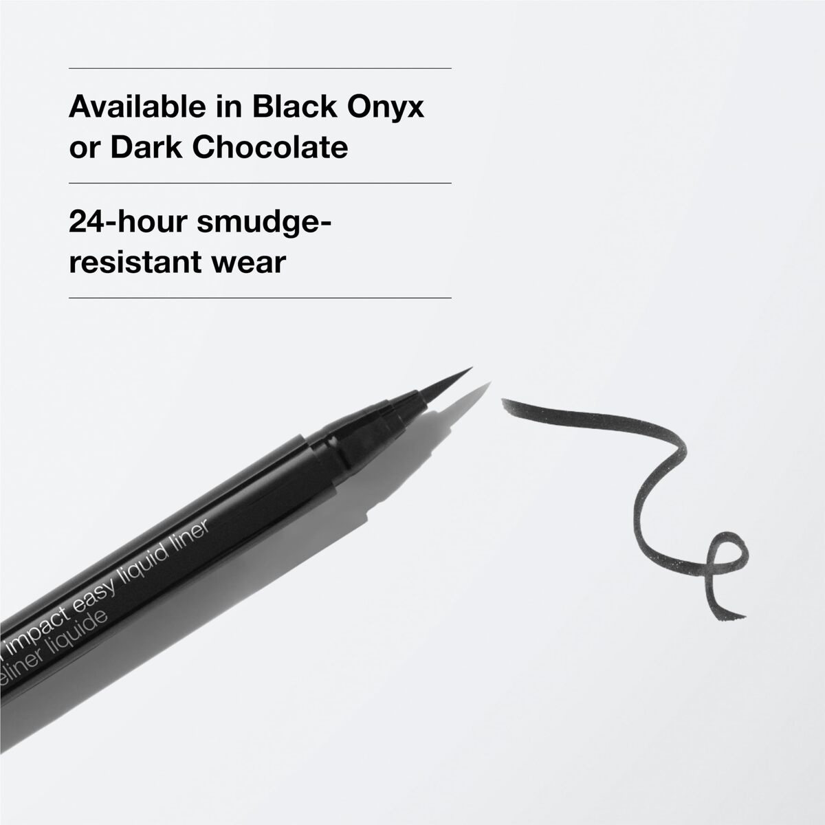 Details: Get all the drama of a waterproof liquid eyeliner without the drama of putting it on. Clinique?s High Impact Easy Liquid liner is a mistake-proof eyelining pen that creates a clean line in one steady sweep. Tapered, ultrafine precision brush paints on pure, deep color and allows you to draw lines from thin to thick. This Clinique liquid eyeliner makes it easy to master a cat eye or winged eyeliner look. Long-wearing, eyeliner lasts 24 hours to keep your look fresh all day. Waterproof. Ultra-pigmented for an intense black color payoff.
