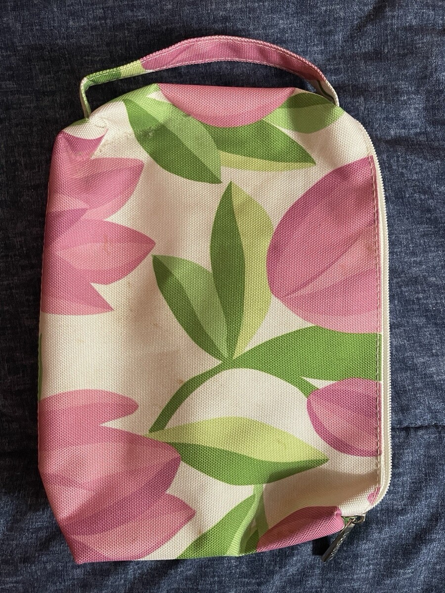CLINIQUE PINK TULIP SMALL COSMETIC MAKE UP BAG - NEW WITHOUT TAGS.