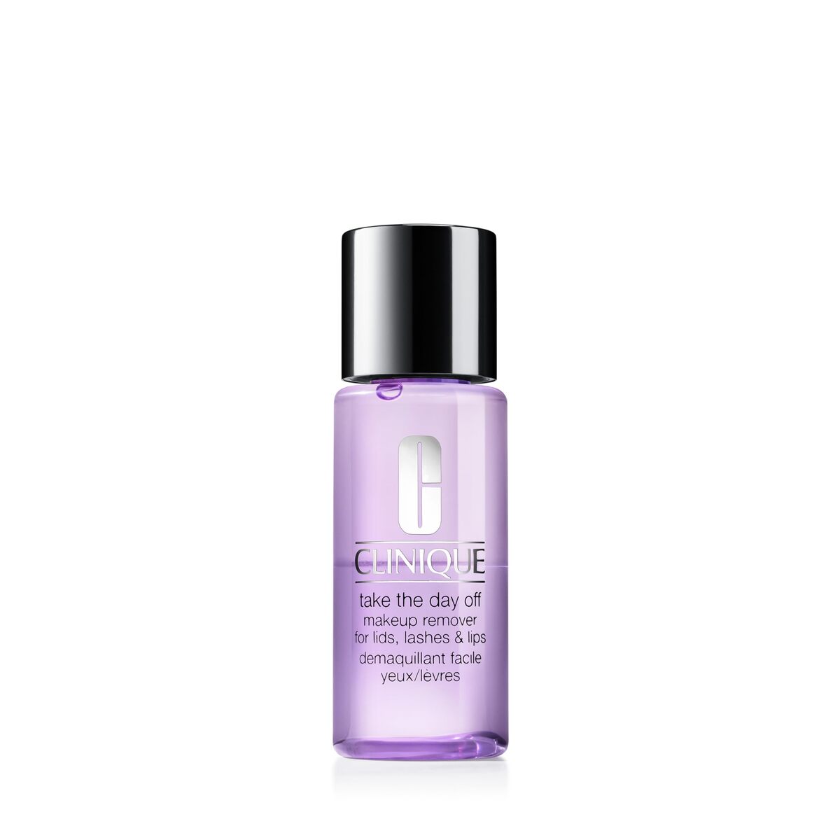 Details: Clinique Take The Day Off Makeup Remover For Lids, Lashes Lips is a totally tugless lipstick remover, waterproof mascara remover, and eye makeup remover liquid. Gentle formula dissolves and ?lifts away? long-wearing makeup without irritating or stinging skin. Ophthalmologist tested. Expert tip: No matter how late it is or how tired you are, remove your makeup. Going to bed with makeup on can lead to dullness, irritation, and clogged pores. Clinique?s Take The Day Off formulas work gently, effectively. How will you take the day off?