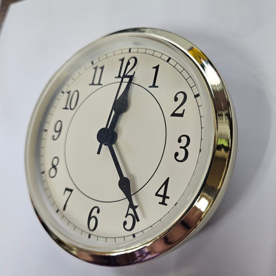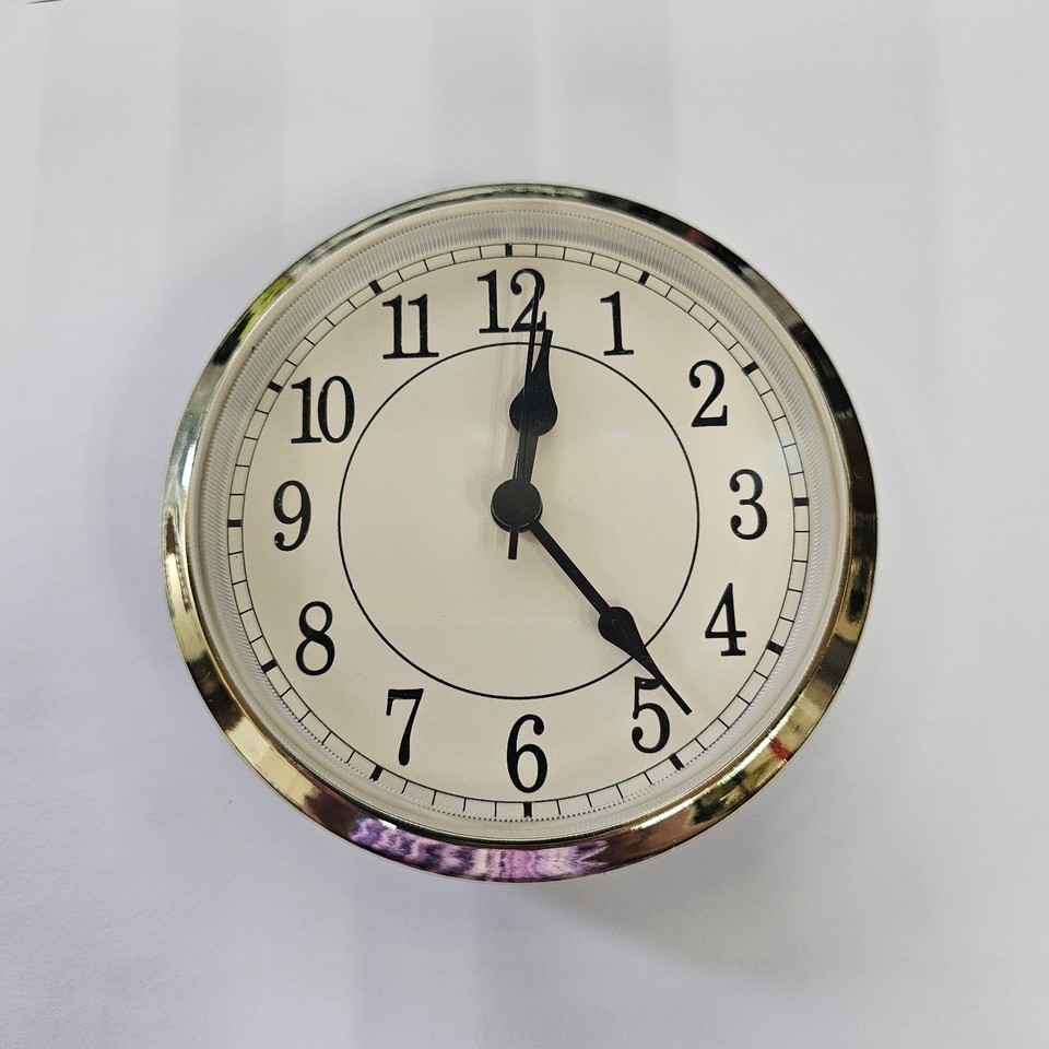 Deluxe Clock Fit-Up Movement ? 4? ? Off-White (cream) Dial with Arabic Numerals ? Gold Bezel ? Slight Second ? Limited Stock