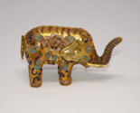 This figurine features a beautifully crafted Asian elephant design with a vibrant floral pattern, showcasing intricate brass and enamel work. Made with mixed materials, this piece measures approx. 2" tall and 3.5" long. Perfect for collectors of animal figurines or those with a fondness for wild animals, this cloisonne figurine captures the elegance and strength of the majestic elephant in a unique and visually striking way.
