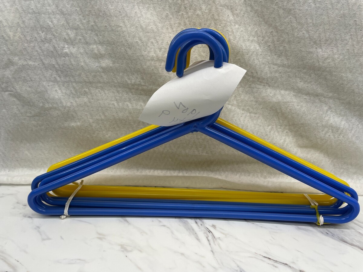 - Clothes Hangers Plastic Yellow/Blue. 9 Count