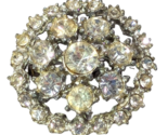 - Cluster Brooch Rhinestone Crystal Silver Tone Round Pin Vintage 1950s Jewelry