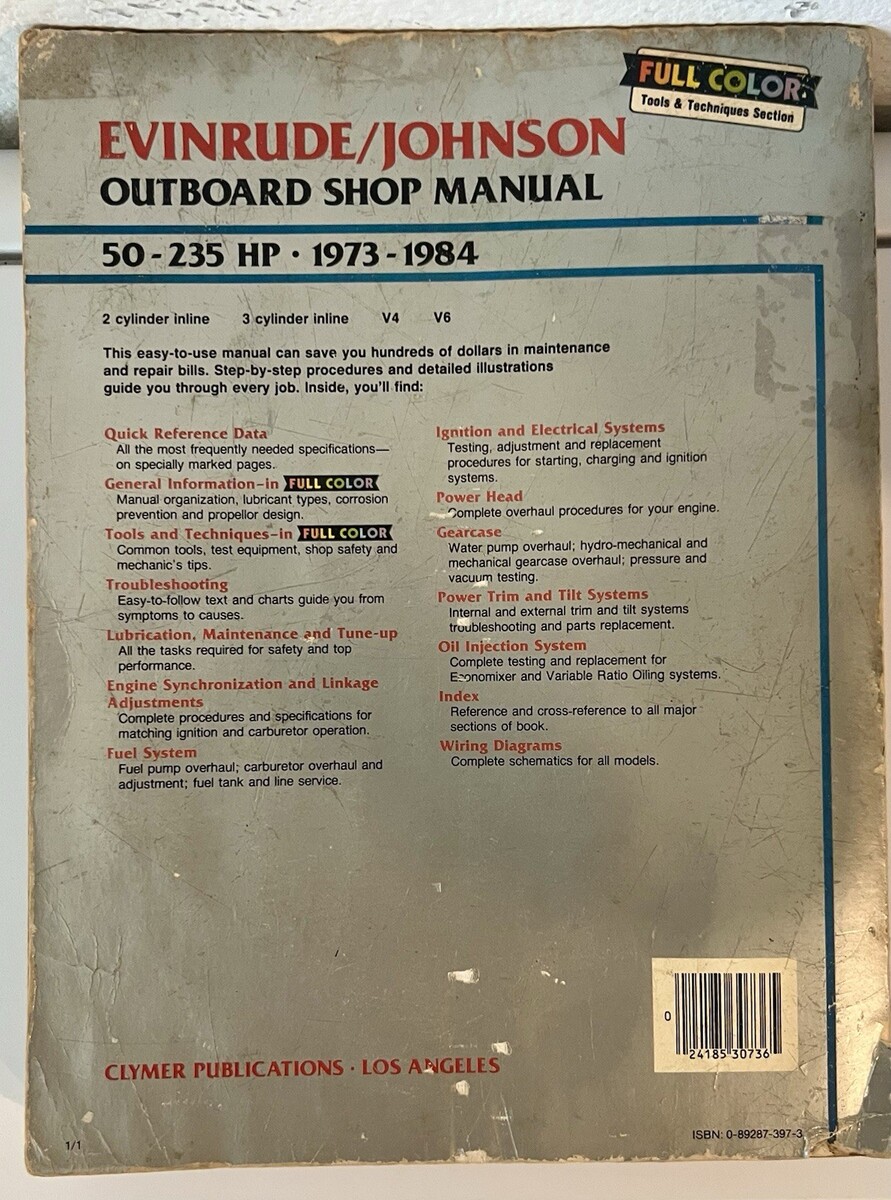 - Clymer Outboard Shop Manual B736 Evinrude/Johnson 50-235Hp 1973-1987 *Flaws*