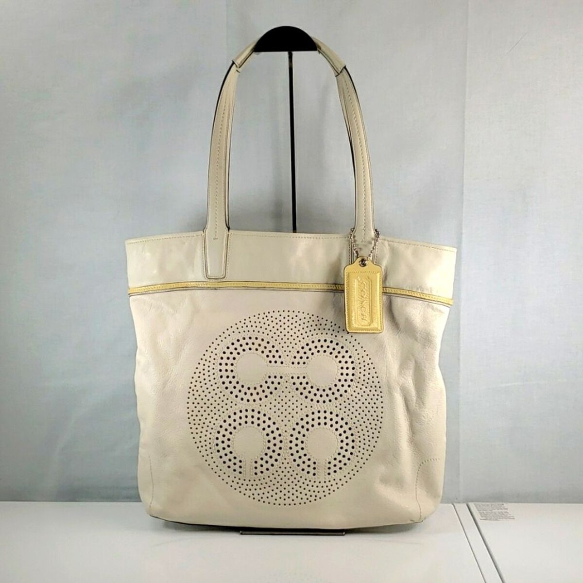 - Coach 17041 Audrey Leigh Laser Cut Perforated Ivory Leather Tote Shoulder BagNWT