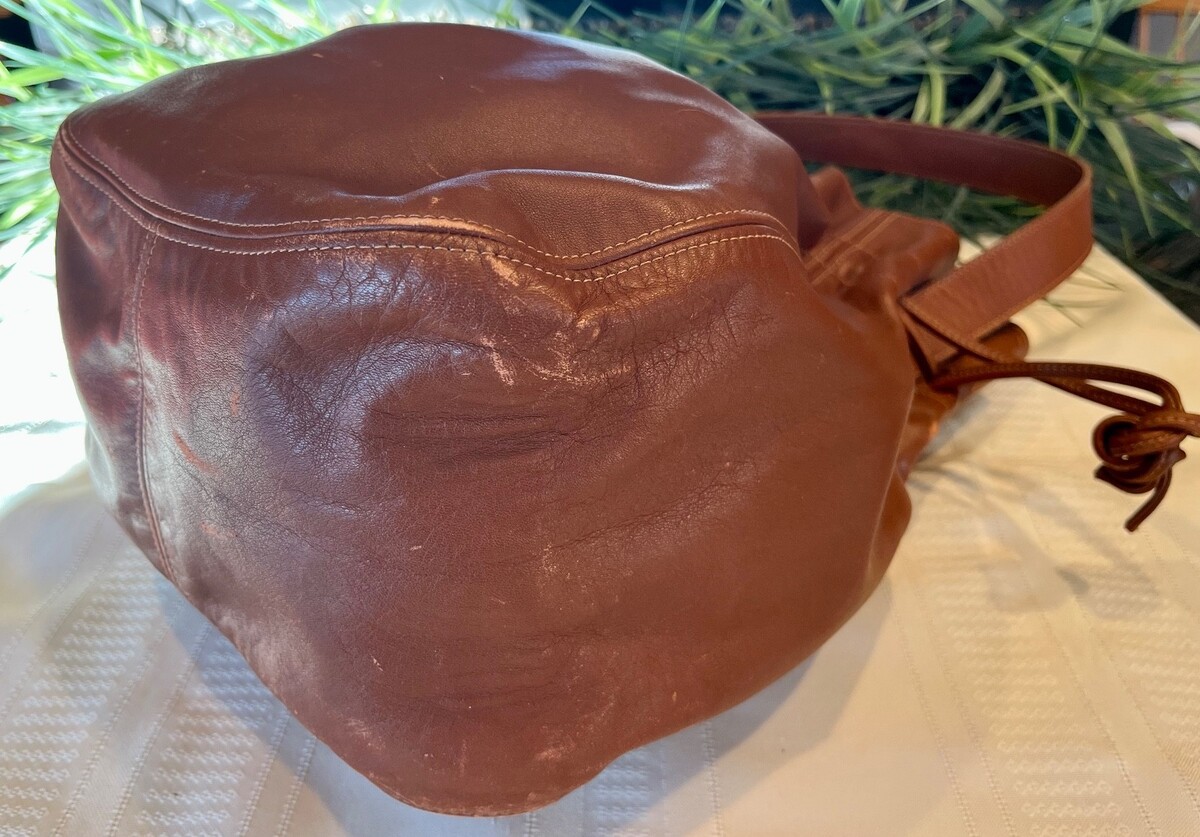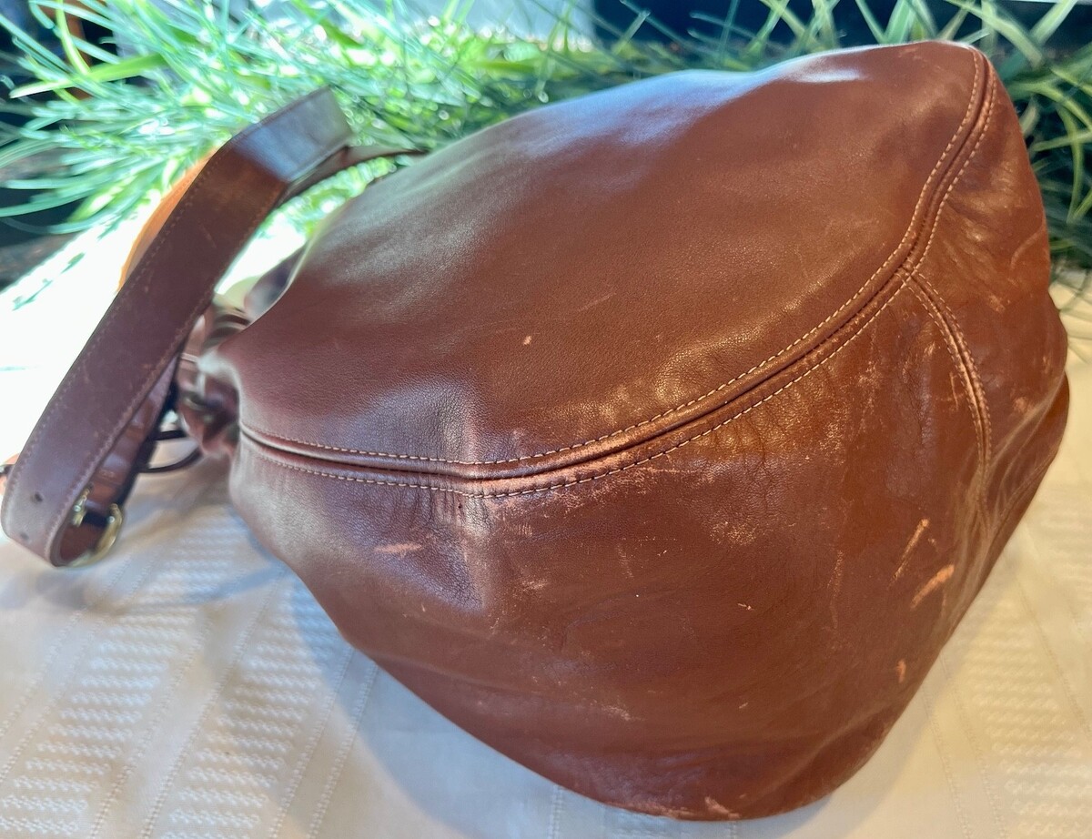 Coach 4122 Vintage Delancy Drawstring Bucket Bag Leather British Tan 1980s