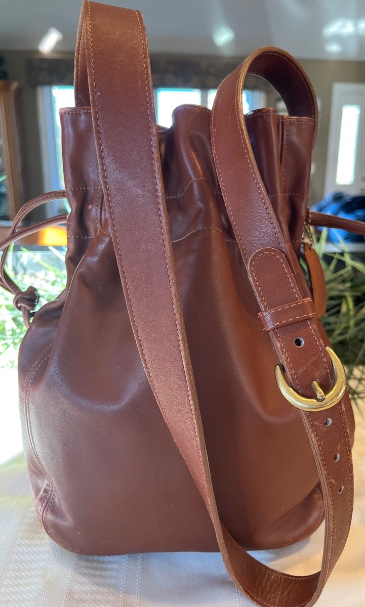 - Coach 4122 Vintage Delancy Drawstring Bucket Bag Leather British Tan 1980s