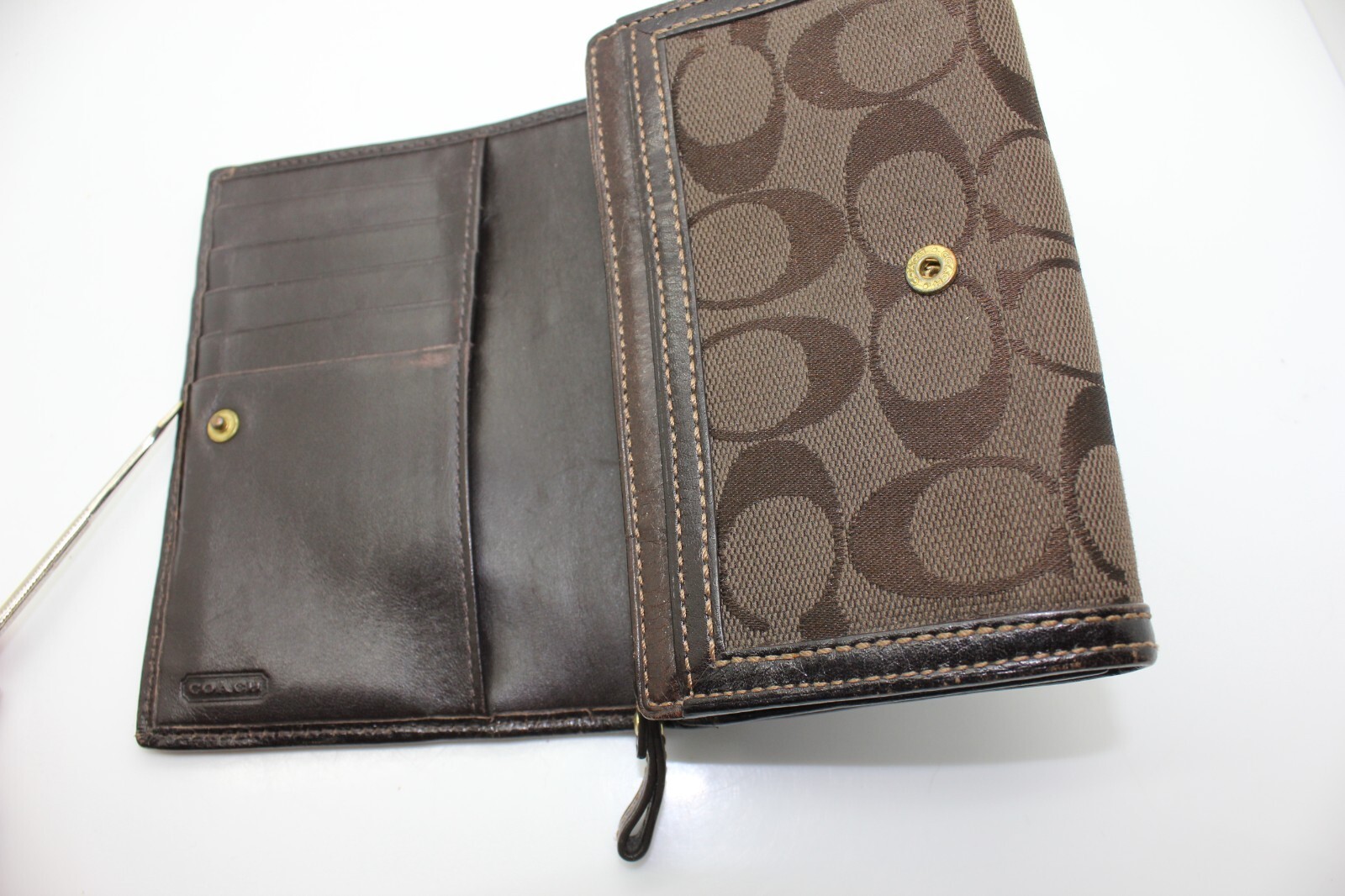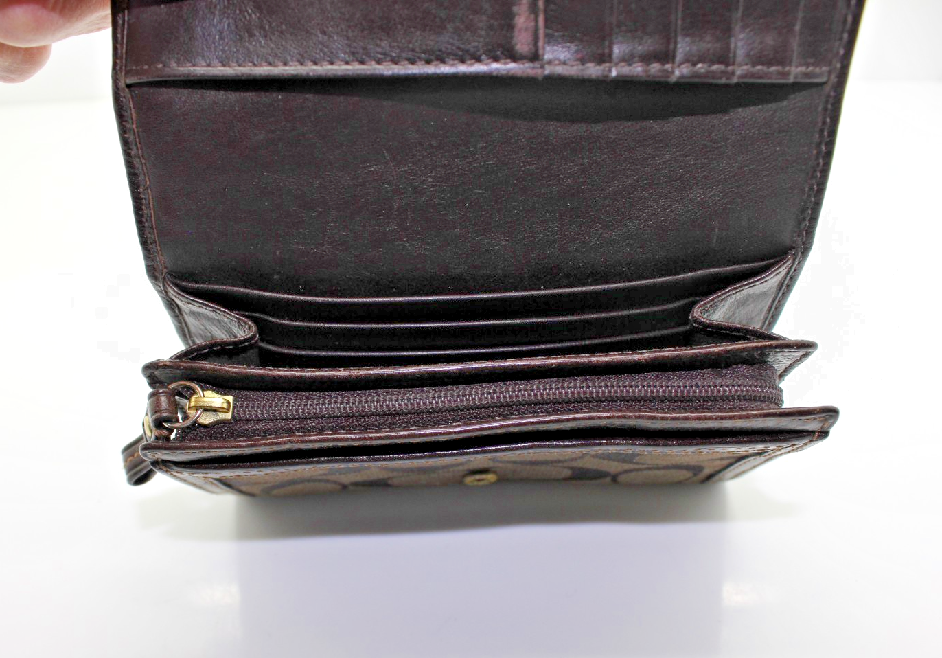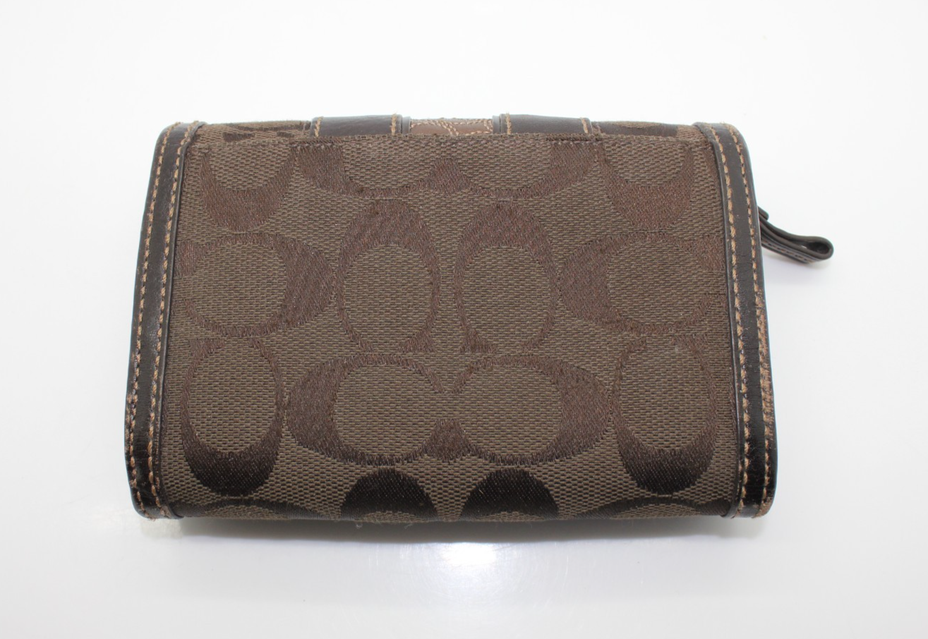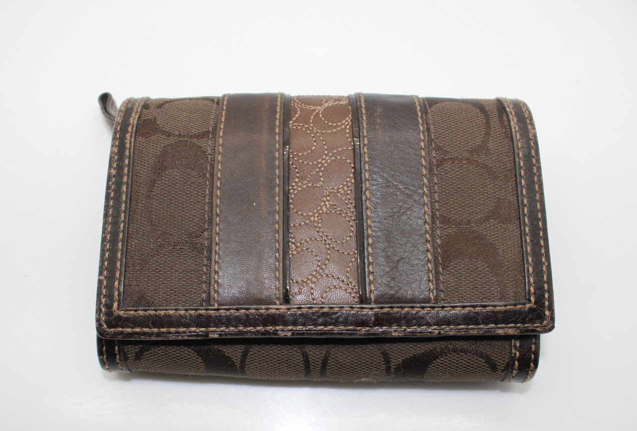 - Coach Hampton Signature Dark Chocolate Brown Leather Wallet Clutch