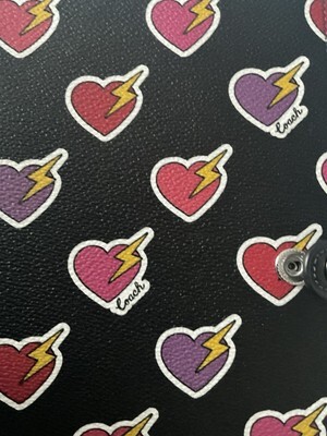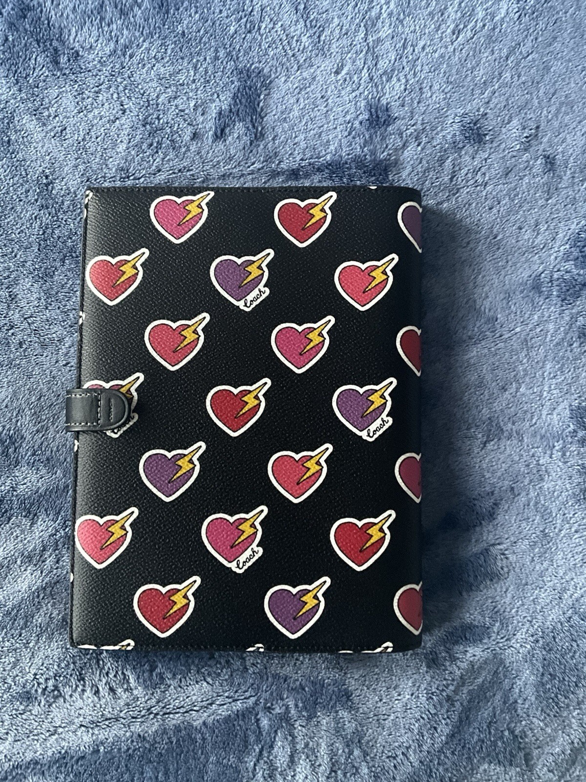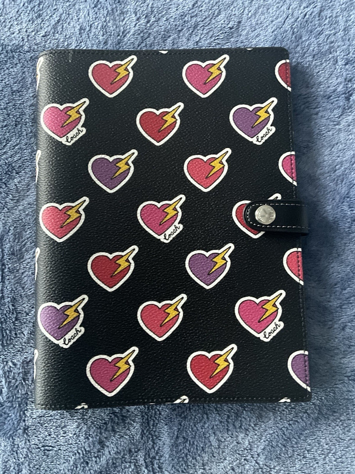 - Coach Notebook with Heart Bolt Print Silver Black Multi Smooth Leather