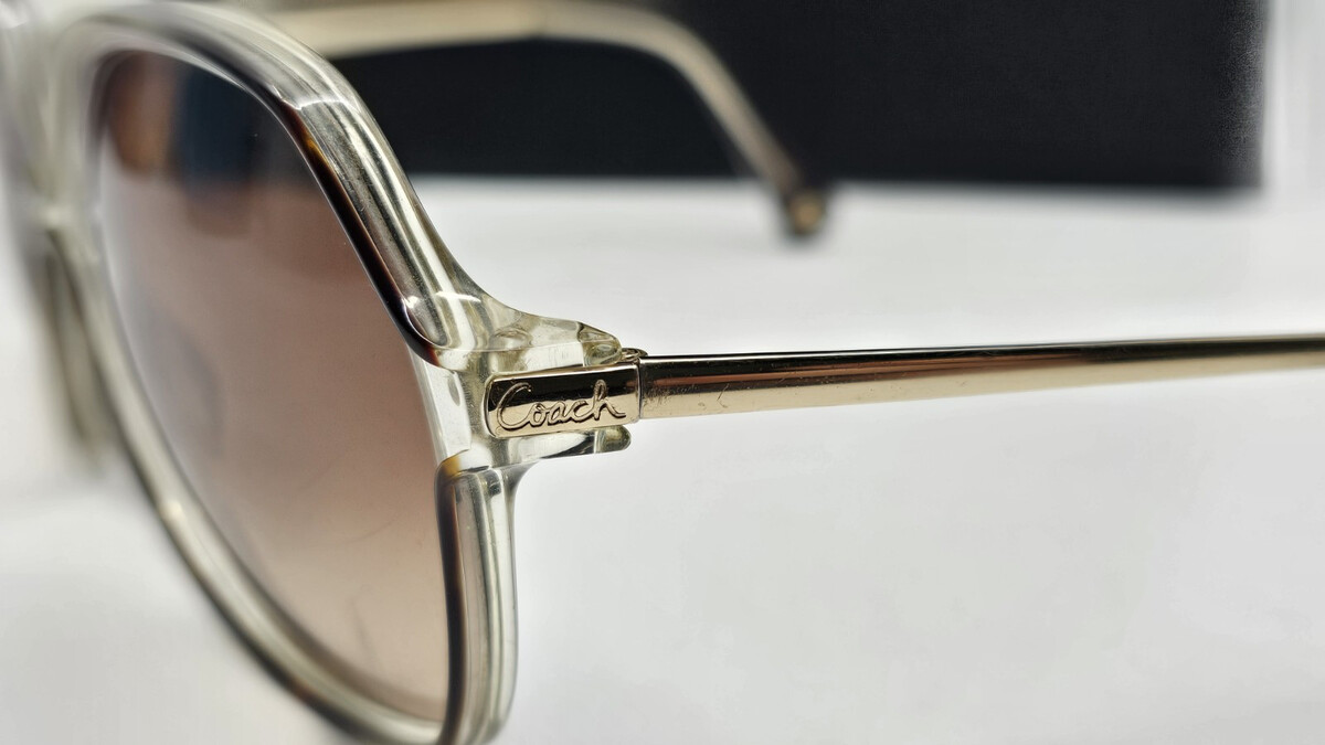 - Coach Odessa Dominique S824 Clear Sunglasses 58 13 130 Gold Arms Acetate Metal