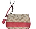 Coach Signature Beige & Pink Wristlet Bag With Zip Closure & Interior Pocket