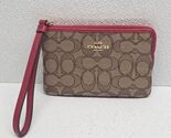 - Coach Signature Corner Zip Wristlet Khaki Strawberry Wallet F58033