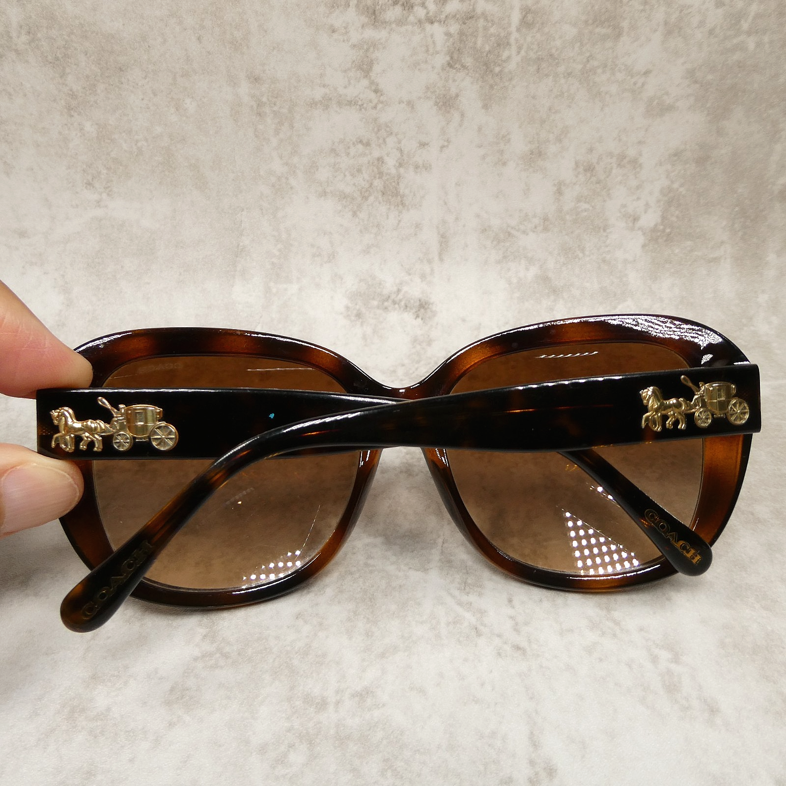 "Coach" logo on both temples; "C" logo design on inner arms.