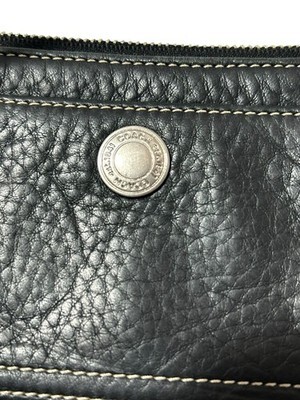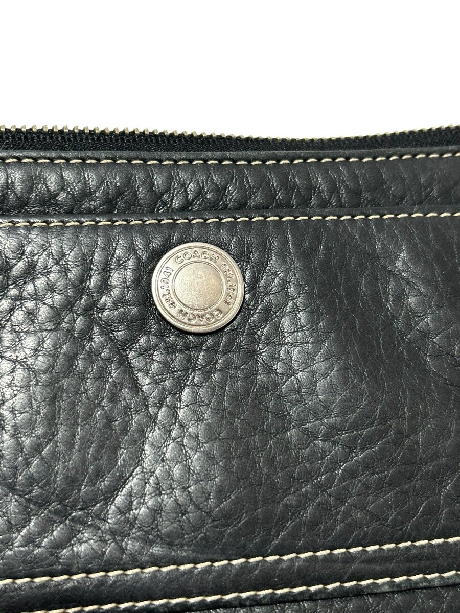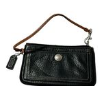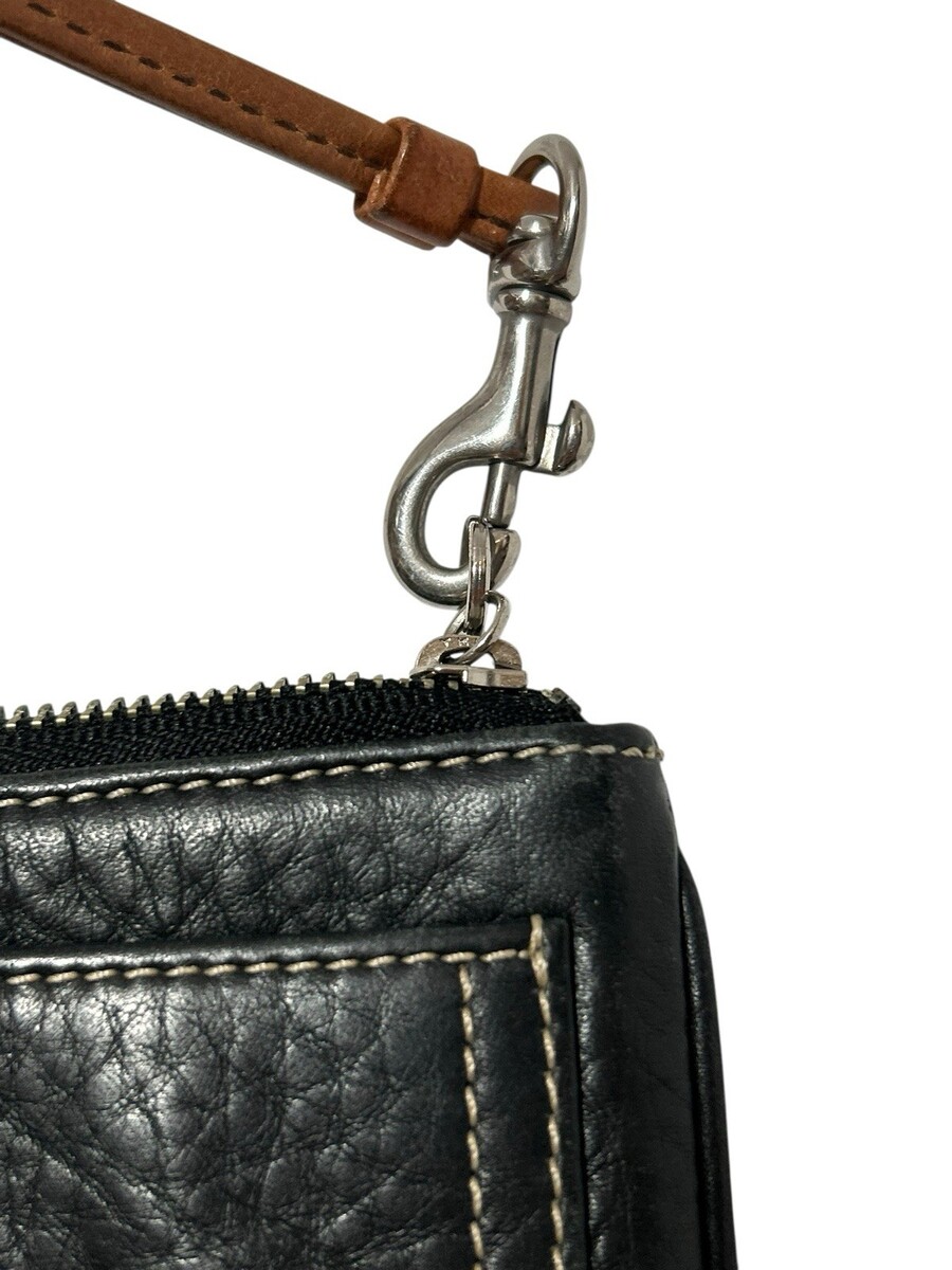 - Coach Wristlet Black Pebbled Grain With Brown Leather Wrist Strap READ