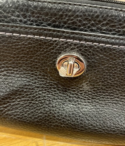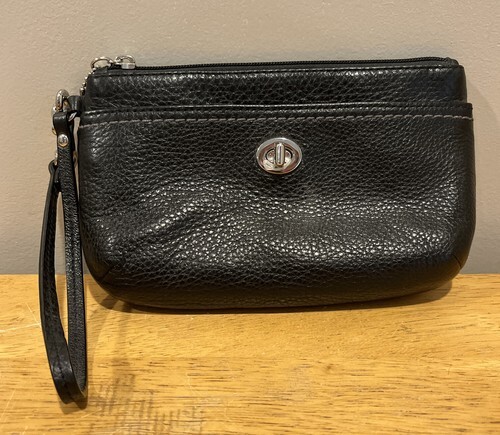 - Coach Zip Turnlock Black Pebble Leather Wristlet Wallet Bag Charm